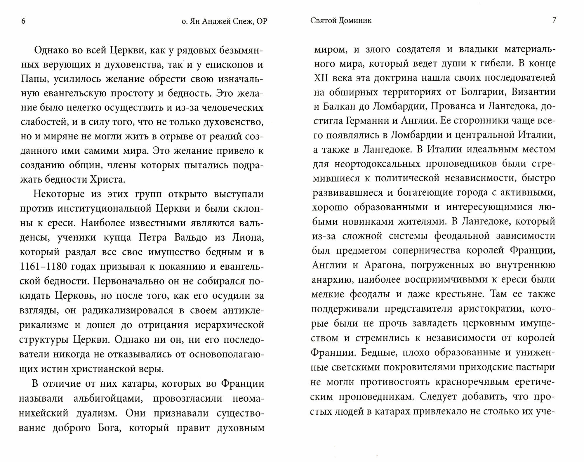 Он предложил своим соратникам евангелизацию по примеру апостолов: странствуя в полной нищете, проповедовать Слово Божие, сохраняя при этом наиболее ценные формы монашеской жизни. Вы можете узнать из этой книги факты о ранних годах святого Доминика, подробные сведения о его миссиях и основании им Ордена проповедников. Святой Доминик начал свою проповедь в Тулузе и вместе со своими сподвижниками прошел до восточных пределов Европы. Жизнь святого Доминика является одним из примеров неустанных усилий на службе у Бога. Переезжая с места на место, он молился и проповедовал практически без перерыва.