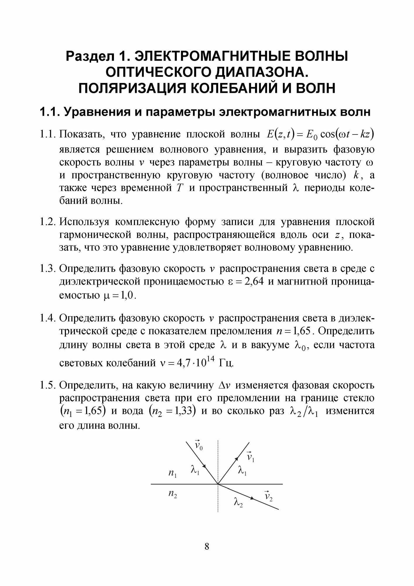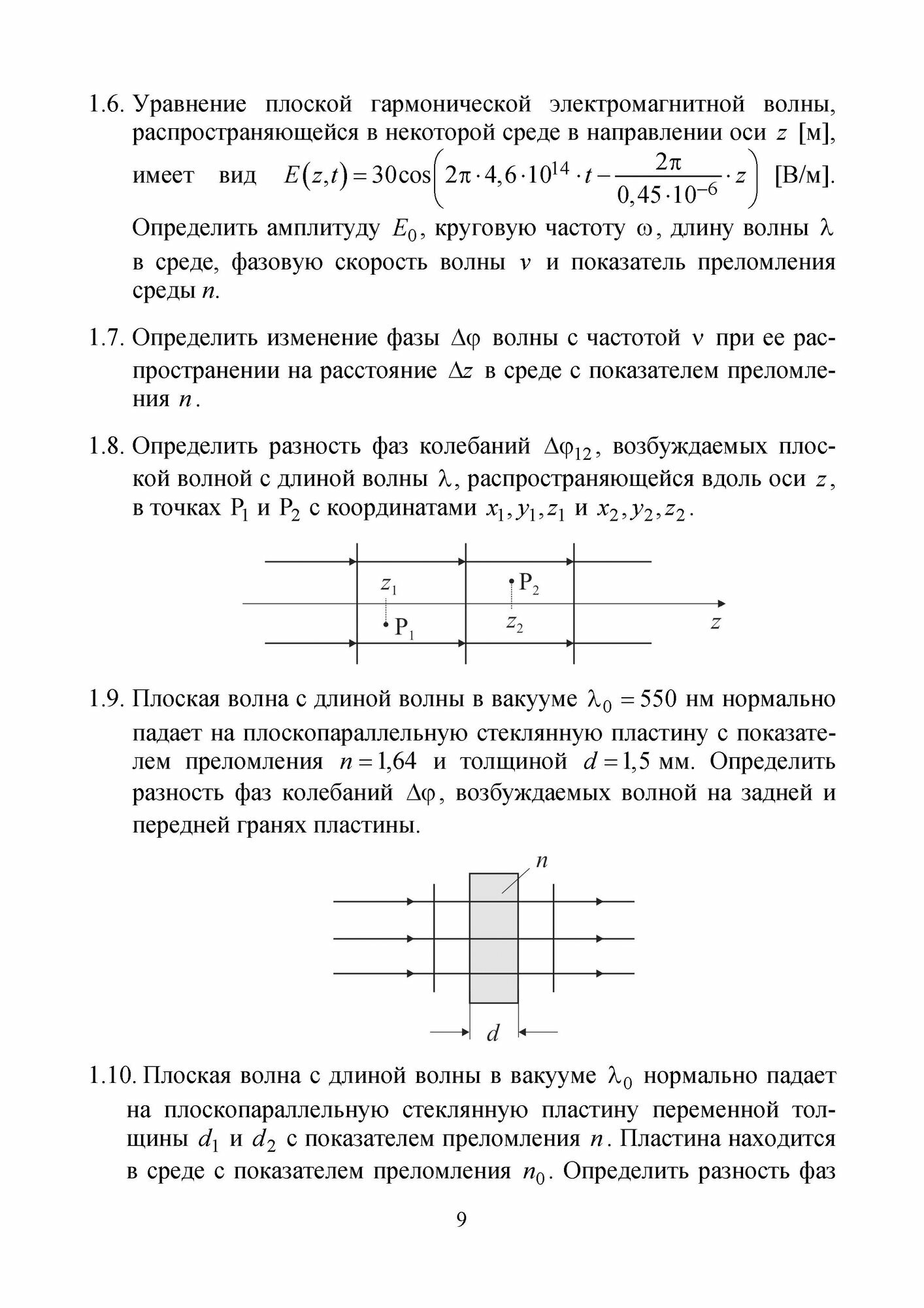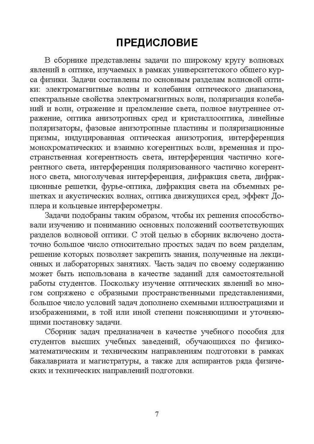 В сборнике представлены задачи по широкому кругу волновых явлений в оптике, изучаемых в рамках университетского общего курса физики, а также специальных дисциплин оптического направления. Задачи составлены по основным разделам волновой оптики: электро-магнитные волны и колебания оптического диапазона, спектральные свойства электромагнитных волн, поляризация колебаний и волн, отражение и преломление света, полное внутреннее отражение, оптика анизотропных сред и кристаллооптика, интерференция монохроматических и взаимно когерентных волн, когерентность света, интерференция частично когерентного света, многолучевая интерференция, дифракция света, дифракционные решетки, Фурье-оптика, дифракция света на объемных решетках и акустических волнах, оптика движущихся сред.