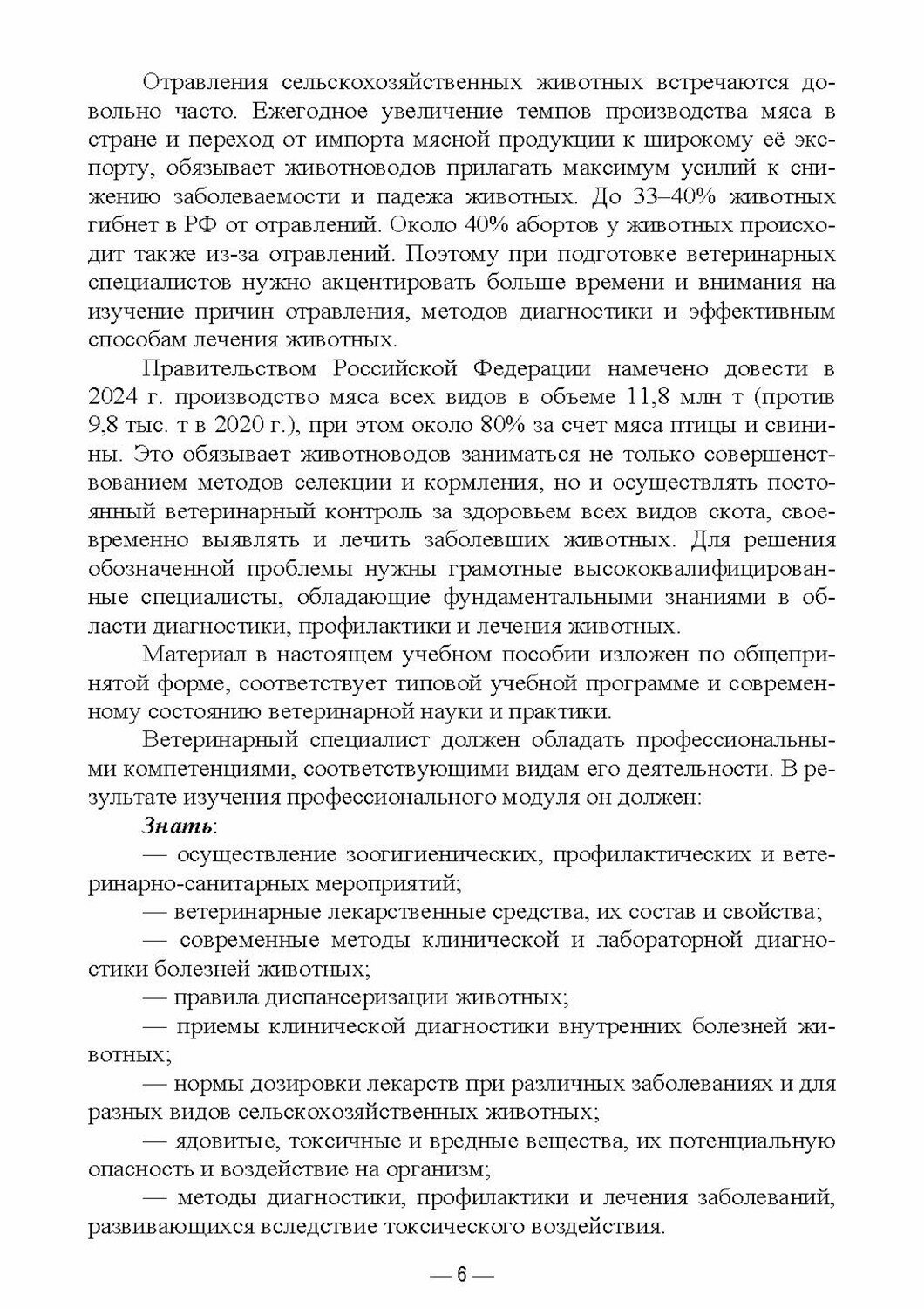 Высокий процент отхода животных в стране от отравлений обязывает животноводов прилагать максимум усилий к снижению заболеваемости и падежа животных из-за отравлений. Поэтому при подготовке ветеринарных специалистов всех уровней необходимо отводить больше времени и внимания на изучение причин отравления, методов диагностики, профилактики и способов лечения животных. Так как причин отравлений много, автор подготовил к изданию на эту тему серию учебных пособий, в которых объясняет студентам, как вникнуть в тонкости самого процесса отравления, на каком этапе и как лучше и быстрее избавиться от него и какие профилактические мероприятия нужно внедрить, чтобы избежать подобных случаев в дальнейшем.