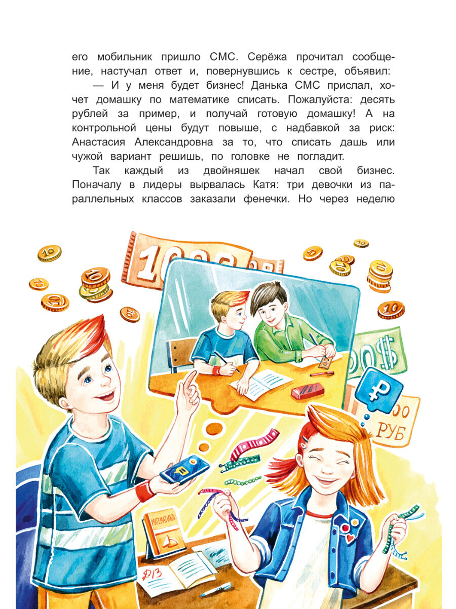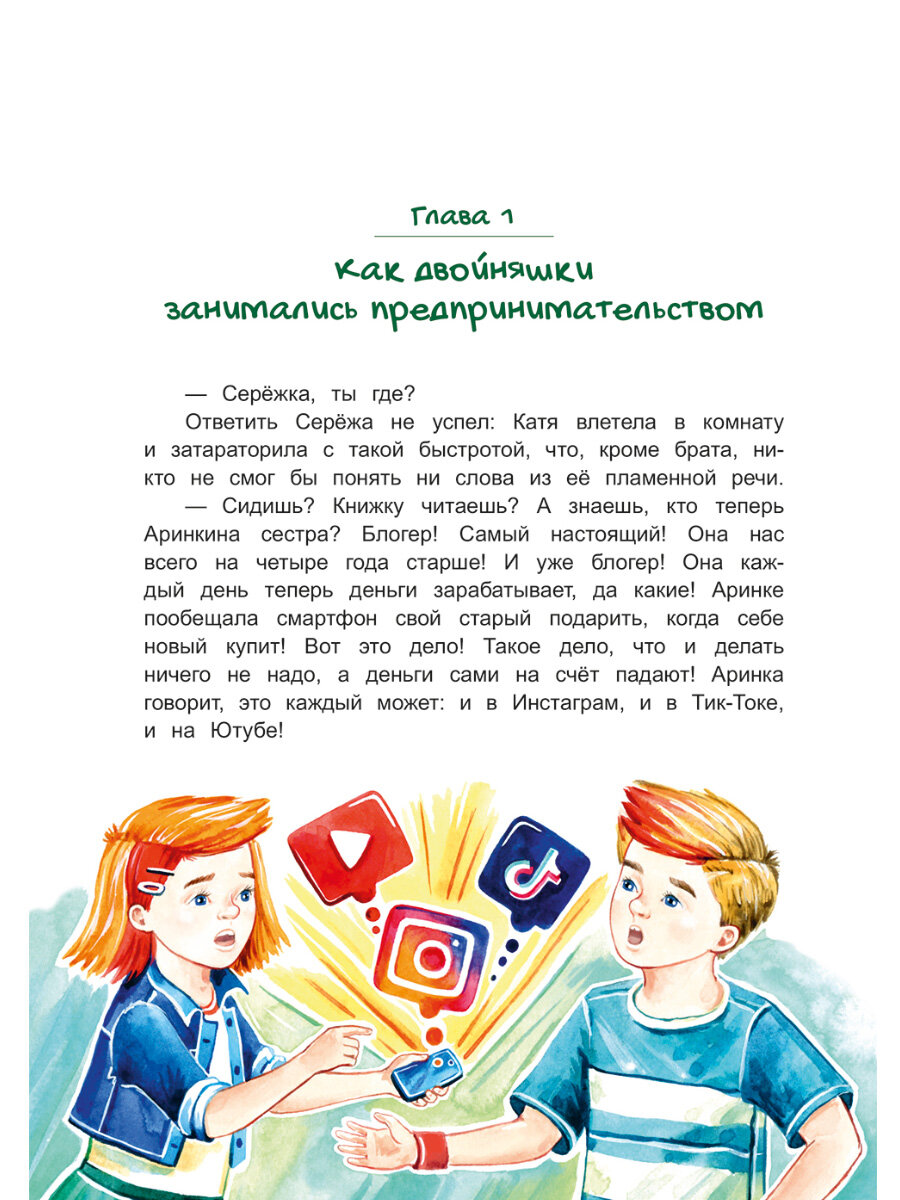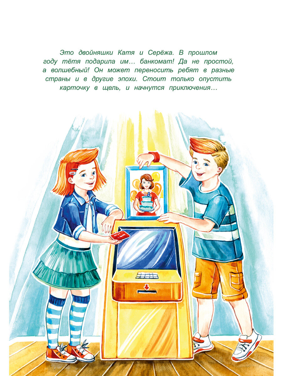 Двойняшки Катя и Серёжа решили заняться предпринимательством, но потерпели неудачу. К счастью, у них есть волшебный банкомат, который может переносить ребят в прошлое. Кто лучше всех знает секреты бизнеса? Конечно, великие предприниматели! С помощью банкомата Катя и Серёжа отправляются на встречу с ними. Генри Форд и Николай Верещагин, Генрих Брокар и братья Никитины, Томас Эдисон и Эдисоны в юбках, булочник Филиппов и Игорь Сикорский помогут понять, какие качества нужны предпринимателю и почему первые попытки двойняшек заработать денег не принесли им успеха.