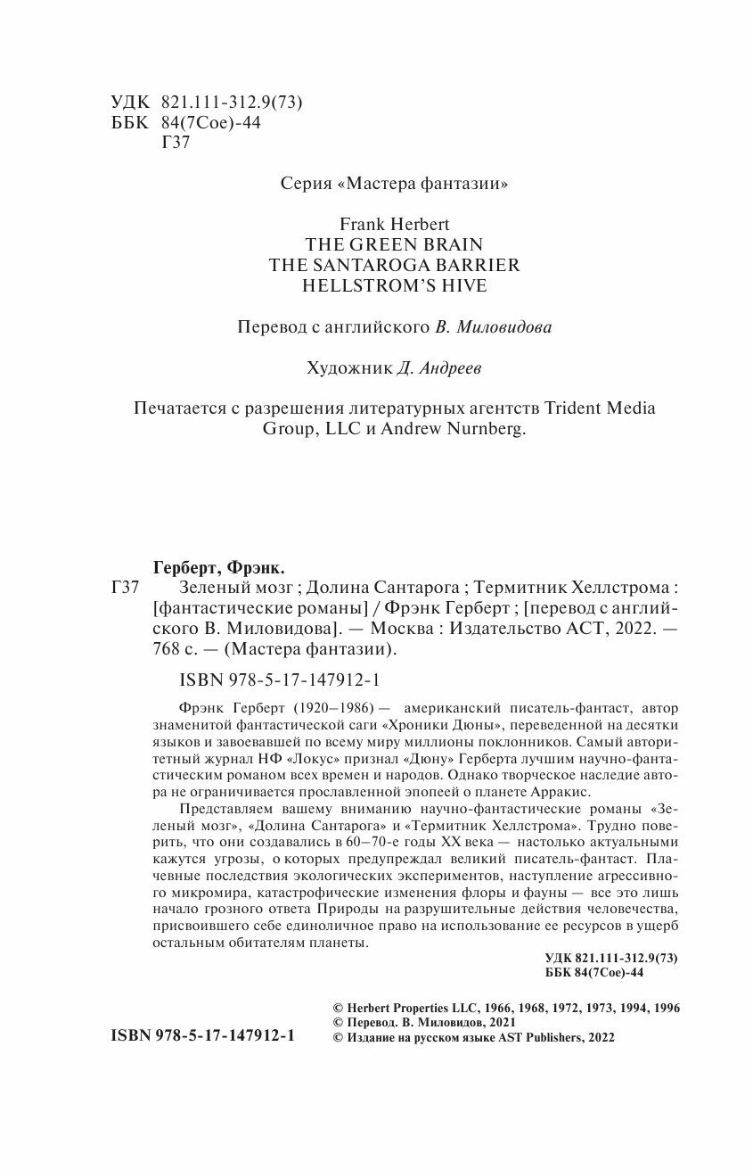 Зеленый мозг Долина Сантарога Термитник Хеллстрома (Фрэнк Герберт); ООО "Издательство Астрель", 2022