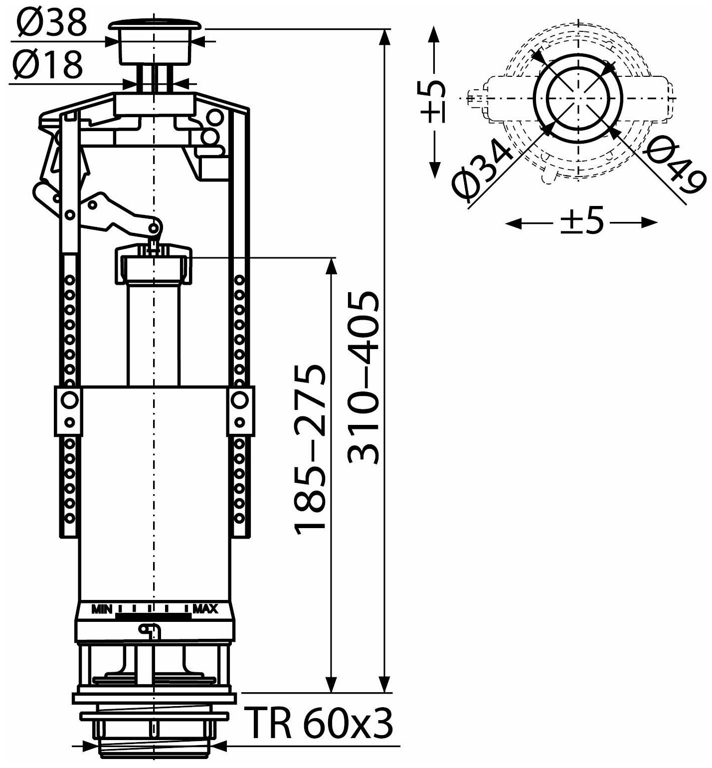 - Поплавок для настройки объема спускаемой воды.