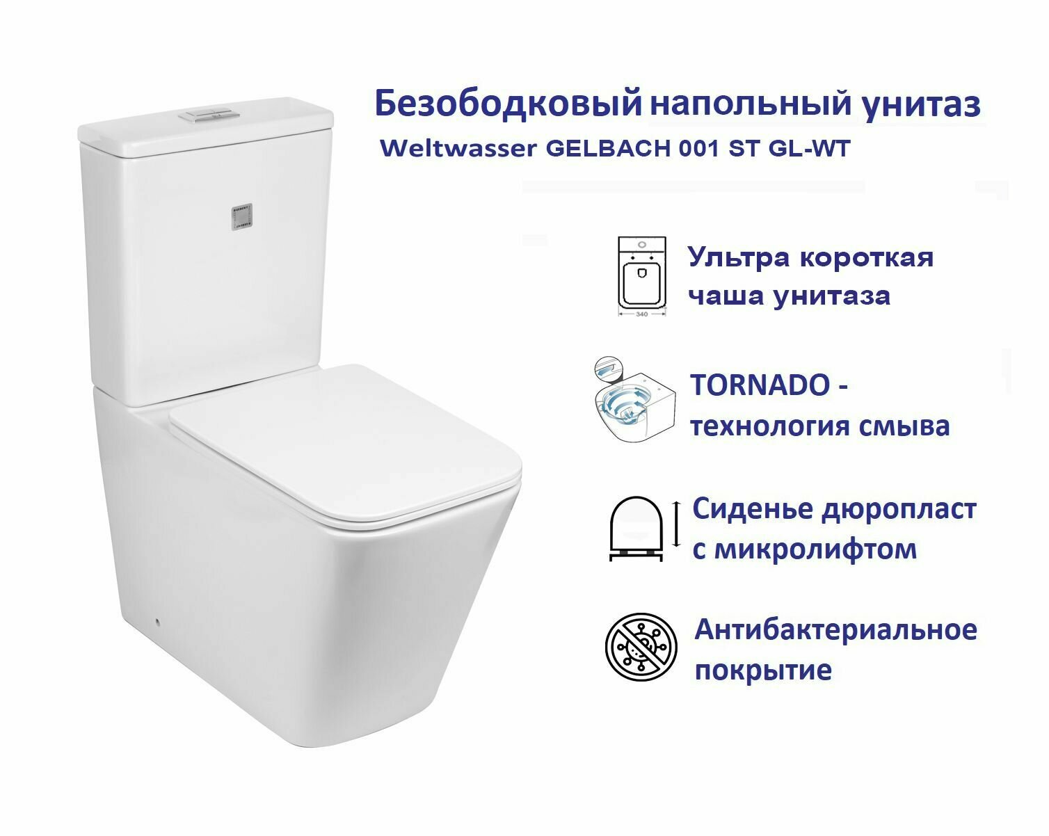 Унитаз компакт WeltWasser Gelbach 001 ST GL-WT 10000006090 Белый глянец с бачком и сиденьем Микролифт
