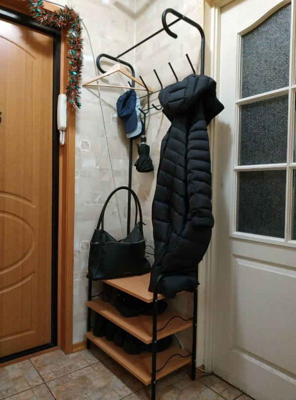 - Предусмотрены крючки для верхней одежды, сумок и зонтов и полки для обуви, тапочек и обувных аксессуаров;