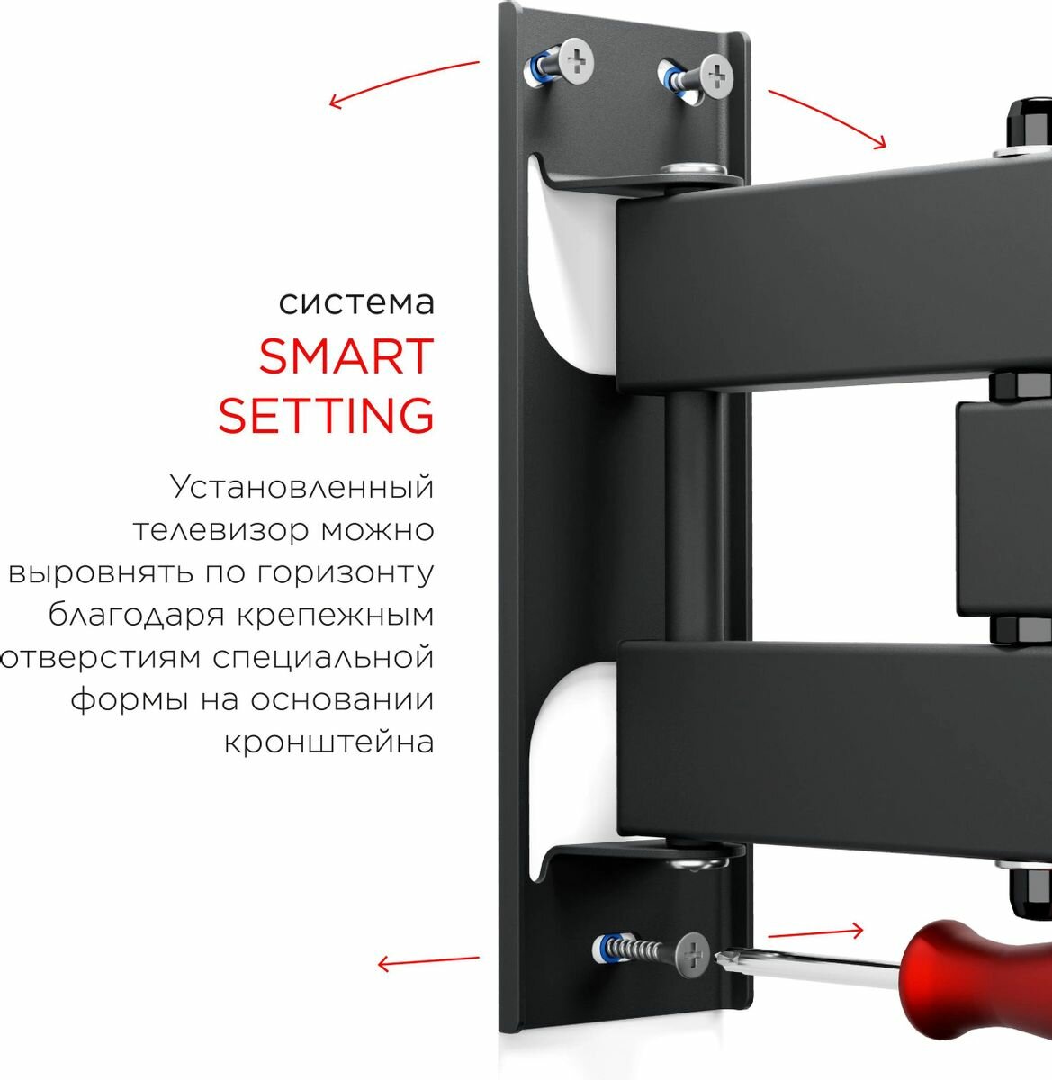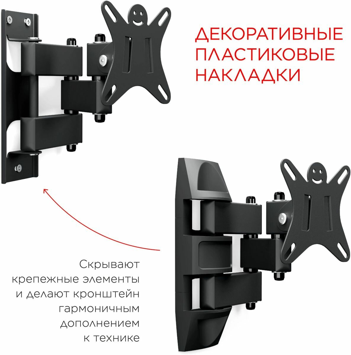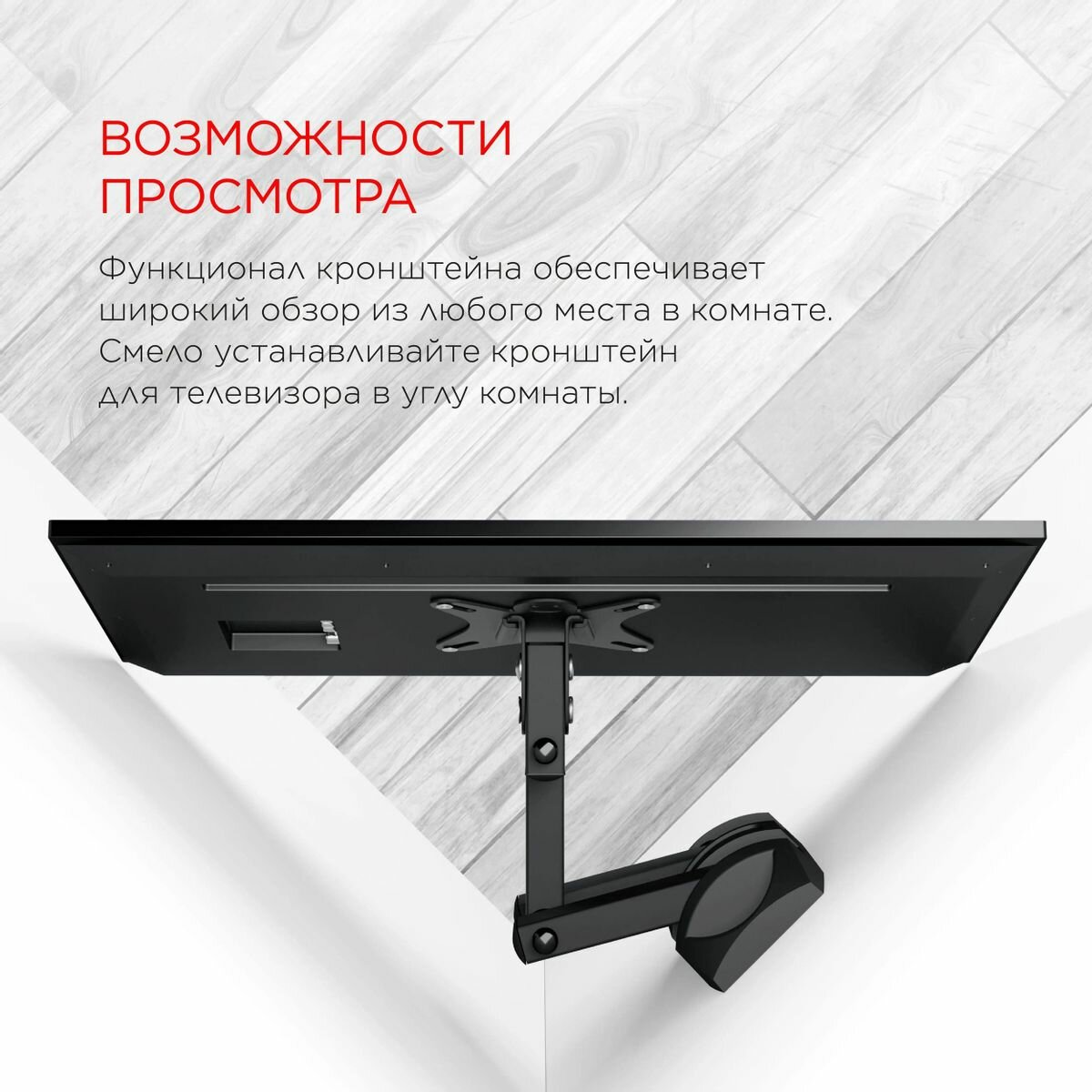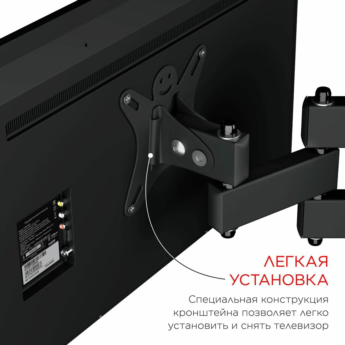 Телевизор можно наклонять, поворачивать и прижимать к стене. Идеален для установки телевизора в угол комнаты. В набор входят все необходимые крепежи и инструкция по установке.