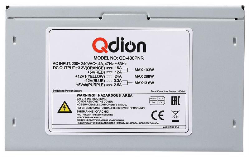 FSP Q-Dion QD-400W – это мощный, качественный и, в то же время, тихий блок питания мощностью 400 Вт. Он оснащен 120-миллиметровым вентилятором, который отлично охлаждает все элементы блока питания, предотвращая их перегрев. Коннекторы питания материнской платы 24+4 pin.