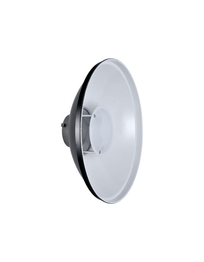 Портретная тарелка Godox BDR-W550 с белым внутренним покрытием, Bowens, диаметр 550 мм. Beauty Dish (портретная тарелка) — модификатор для студийных источников света, применяемый в Fashion и портретной съемке. Свет, излучаемый вспышкой отражается от дефлектора, расположенного по центру, и направляется на внутреннюю белую поверхность тарелки. В результате тарелка формирует круглый пучок мягкого света с выделенным краем четкости (идеально для подсветки волос и макияжа), который нельзя получить от зонтов и софтбоксов. Для еще более мягкого потока, в комплект входит диффузный рассеиватель. Белая внутренняя поверхность отражателя создает мягкий, нейтральный по своим свойствам свет. Дополнительным преимуществом использования тарелки является естественный эффект бликов, которые появляются в глазах модели. Дополнительно можно приобрести сотовую насадку для создания направленного светового потока.