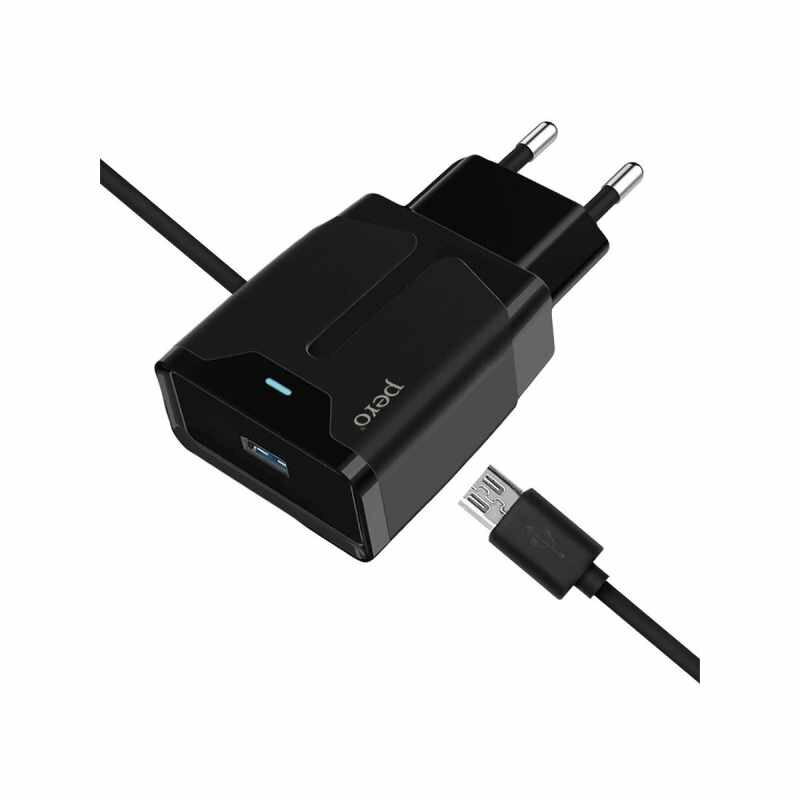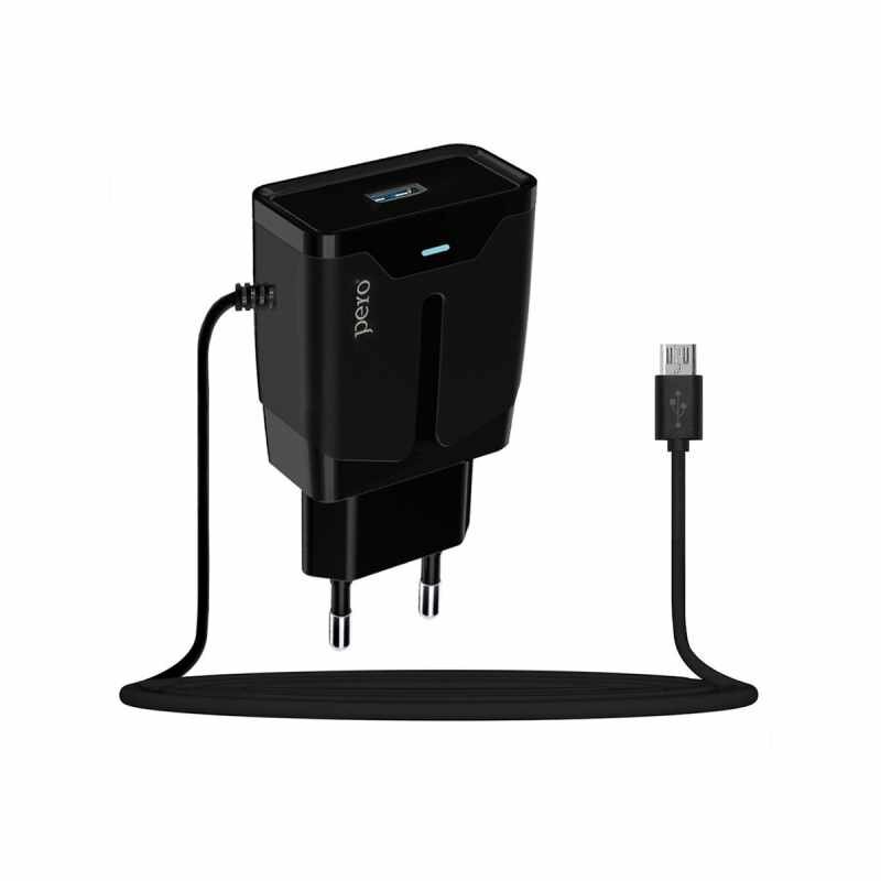 Сетевое зарядное устройство PERO TC04 1USB 2.1A + MICRO-USB CABLE черный