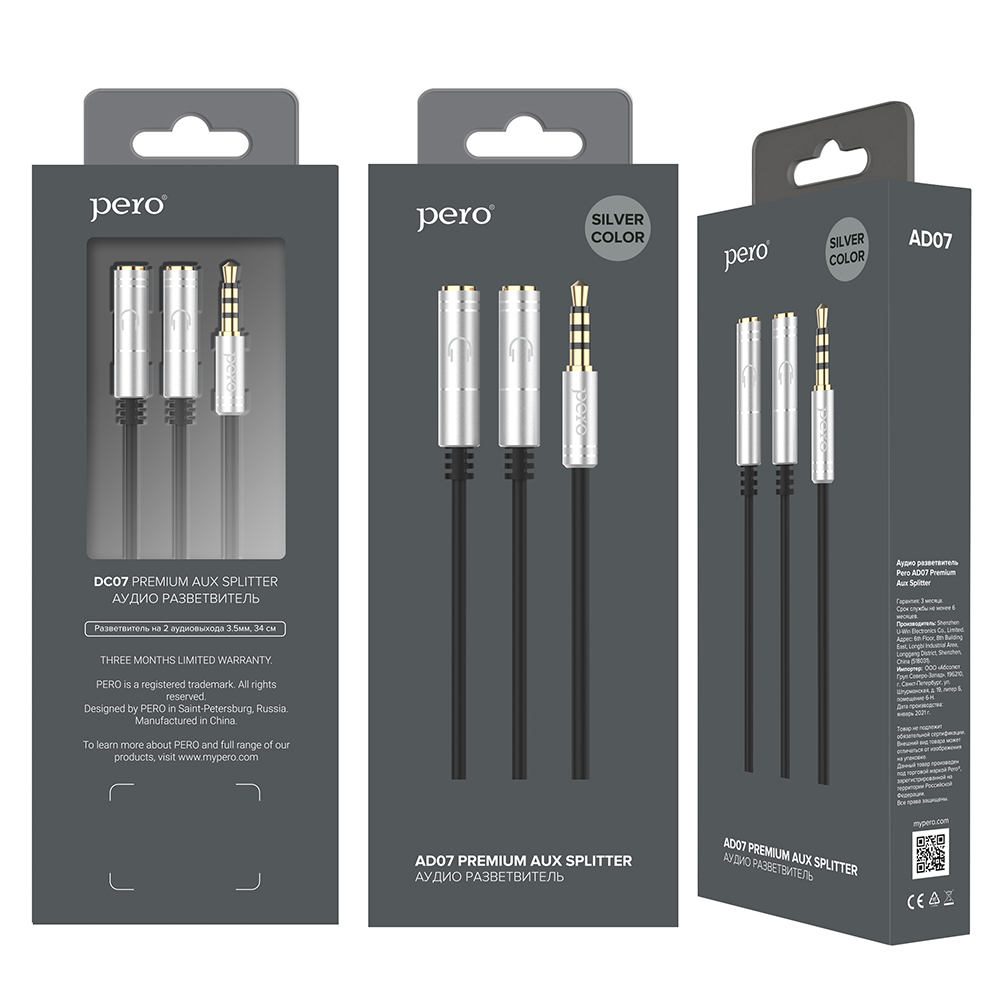Аудио разветвитель PERO AD07 PREMIUM AUX SPLITTER серебристый