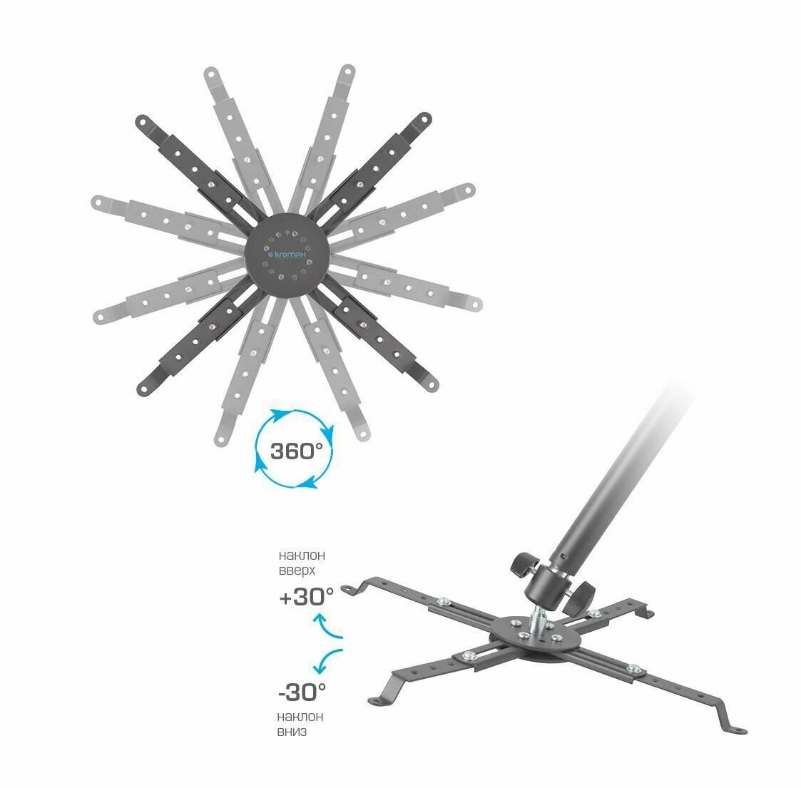 Кронштейн для проектора Kromax PROJECTOR-300 серый макс.10кг потолочный поворот и наклон PROJECTOR-300 grey