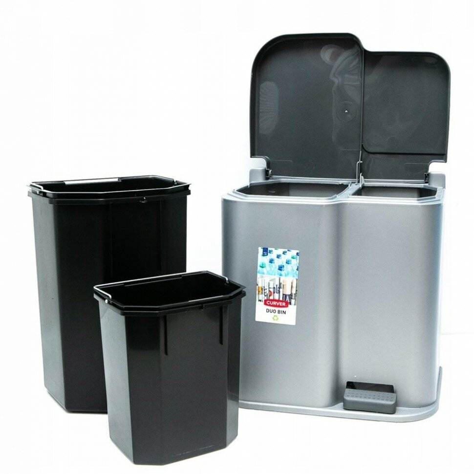 Данный контейнер для мусора от бренда Curver прекрасно подойдет для тех, кто бережно относится к окружающей нас среде. Контейнер разделён на две части с целью сортировки отходов. Он удобен в использовании, поскольку имеет педаль для облегчения открывания корзины и плотную крышку. Нейтральный цвет отлично впишется даже в самый элегантный интерьер.