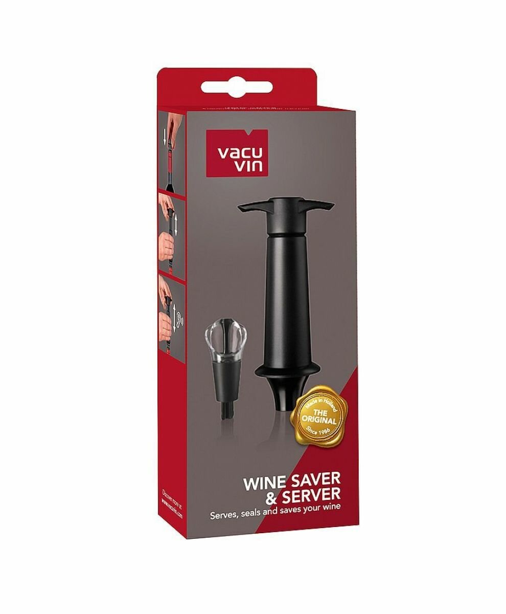 Вакуумный насос откачивает воздух из открытой бутылки и снова запечатывает ее многоразовой резиновой пробкой. Поместите пробку в горлышко бутылки и откачайте воздух с помощью вакуумного насоса. Когда вы достигнете оптимального уровня вакуума, раздастся щелчок. Вакуум замедляет окислительный процесс, благодаря чему вы можете насладиться первозданным вкусом вина даже спустя несколько дней.Оснащен запатентованным щелчок-индикатором вакуума, позволяет замедлить окислительный процесс. Пробка оснащена элегантным каплеуловителем позволяет налить вино в бокал не извлекая пробку из бутылки. Умное и элегантное решение для сервировки и сохранения ваших любимых вин. В наборе насос и пробка с каплеуловителем.