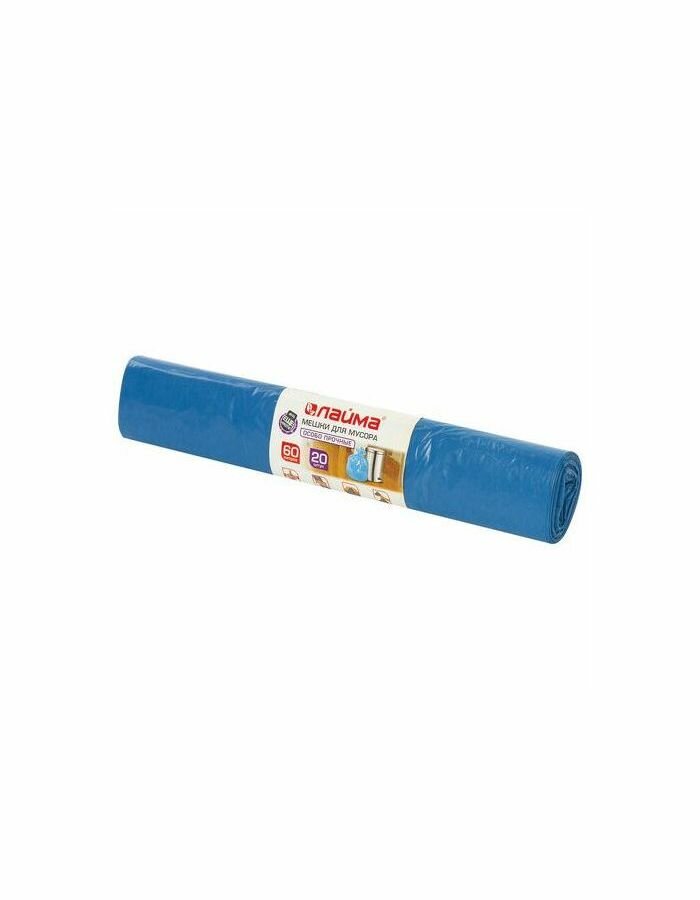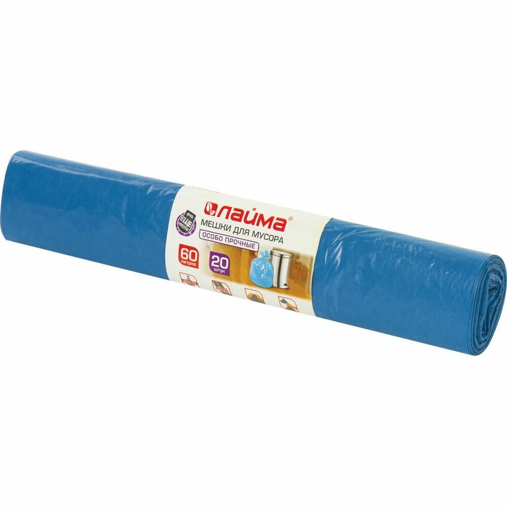 Мешки д/мусора 60л синие в рулоне 20шт ПВД 30мкм 60х70см(±5%) особо прочные ЛАЙМА 601382 5шт/уп.
