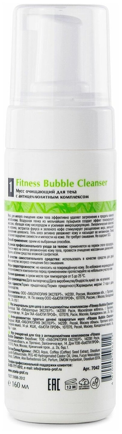 Мусс Очищающий для тела ARAVIA Organic с Антицеллюлитным комплексом Fitness Bubble Cleanser 160мл ARAVIA PROFESSIONAL (36364)