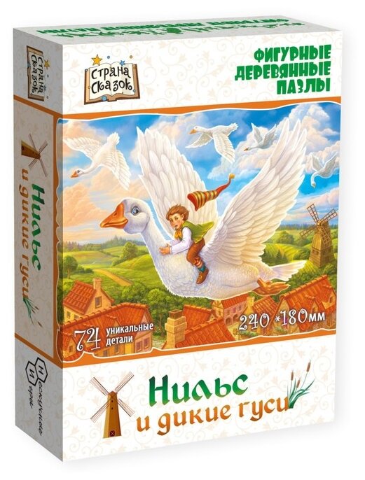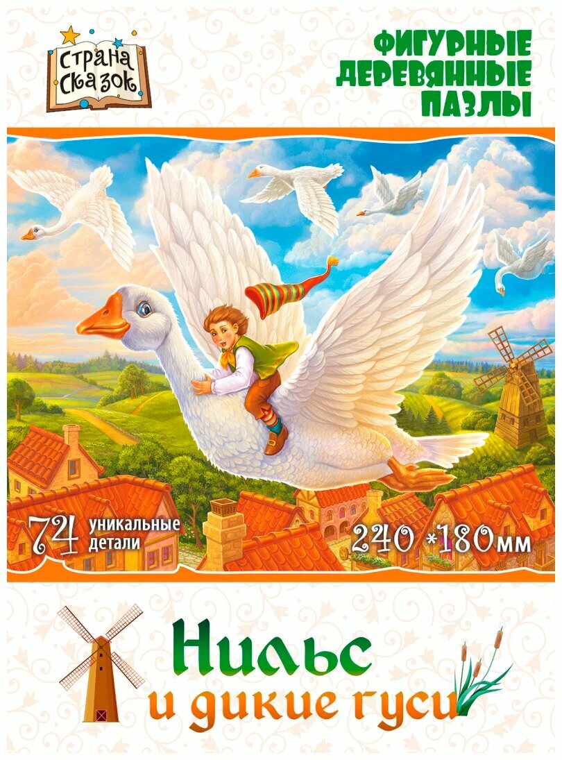 Страна сказок Фигурный деревянный пазл "Нильс и дикие гуси" 8397 Нескучные игры