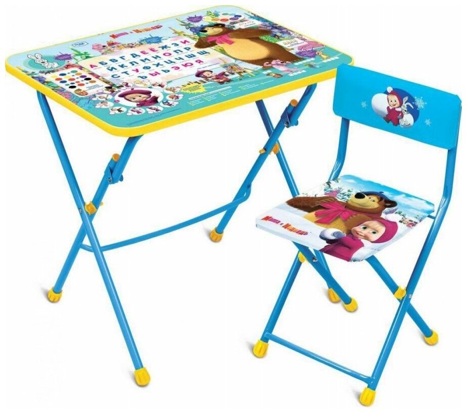 В комплект входят стол с пеналом и стул. Набор станет верным спутником и помощником в учебной жизни ребенка.Столешницу украшают изображения любимых героев и алфавит, который поможет запомнить написание букв. Складная мебель от компании Nika отлично подойдет для учебы или занятий творческой деятельностью.