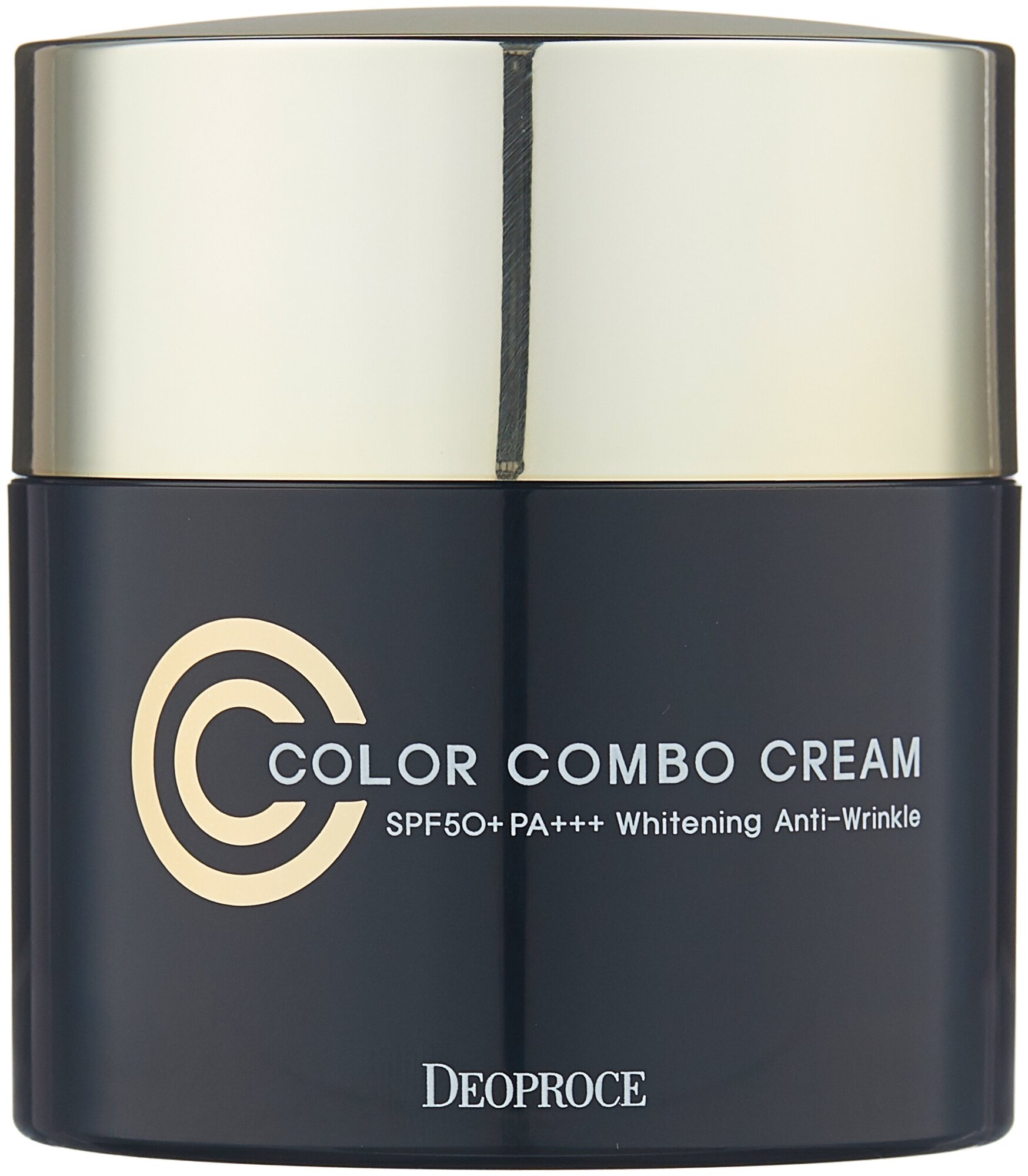 Выравнивает и освежает тон лица и оказывает тройное функциональное действие: защищает от солнца (SPF49/PA++), осветляет пигментацию и разглаживает мимические морщины. СС крем содержит цветные капсулы (технология изменения цвета), которые при нанесении на кожу лопаются и превращают его из белого в бежевый, подходящий под тон кожи, крем. Крем Deoproce Color Combo Cream обеспечивает высокую степень солнцезащиты (SPF49/PA++) и делает кожу яркой, сияющей и шелковистой. Формула 10 Free: крем не содержит талька, парабенов, спирта, синтетических красителей, триэтаноламина MEA, DEA, формальдегида и т.д. Крем подходит для чувствительной и склонной к раздражению кожи.