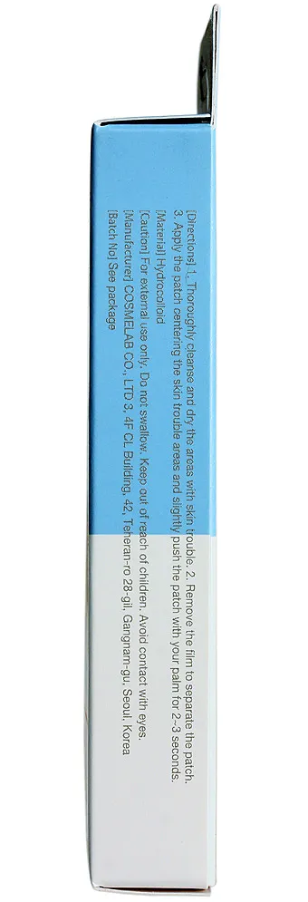 | Способ применения | Наклеить патч на проблемный участок, 2-3 секунды прижимая пальцем к коже |