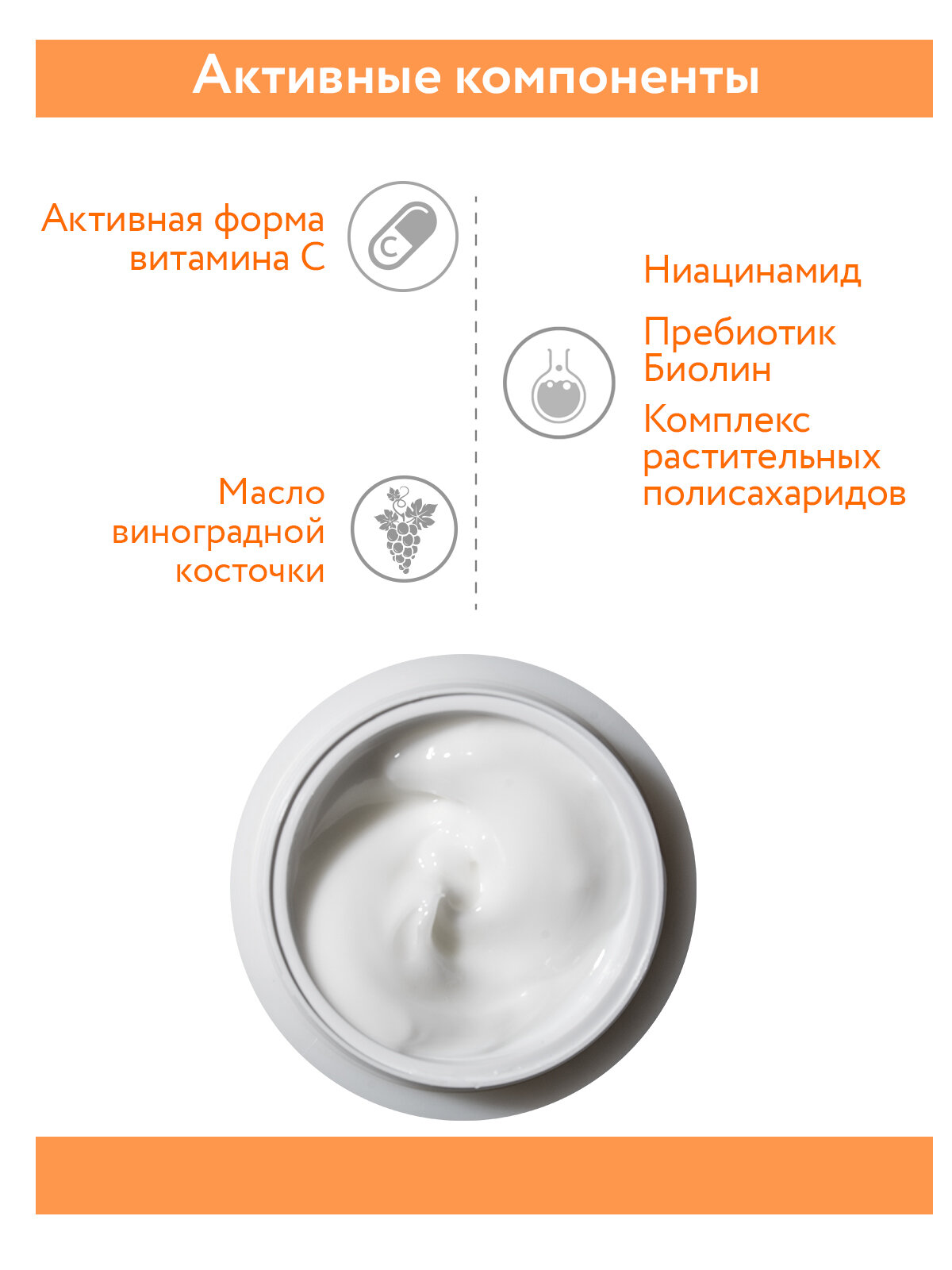 | Активные компоненты | витамин C, пребиотики, ниацинамид, масло косточек винограда |