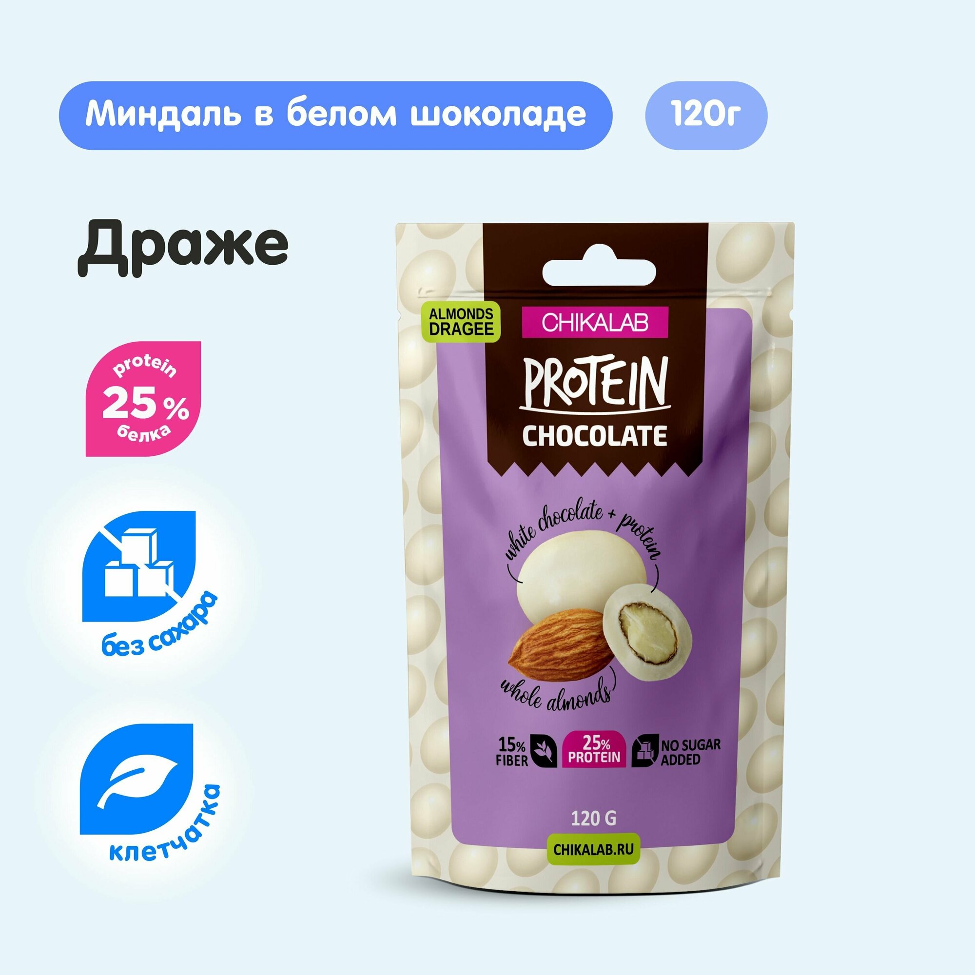 CHIKALAB Драже миндаль в белом шоколаде (без сахара) 120г 12шт