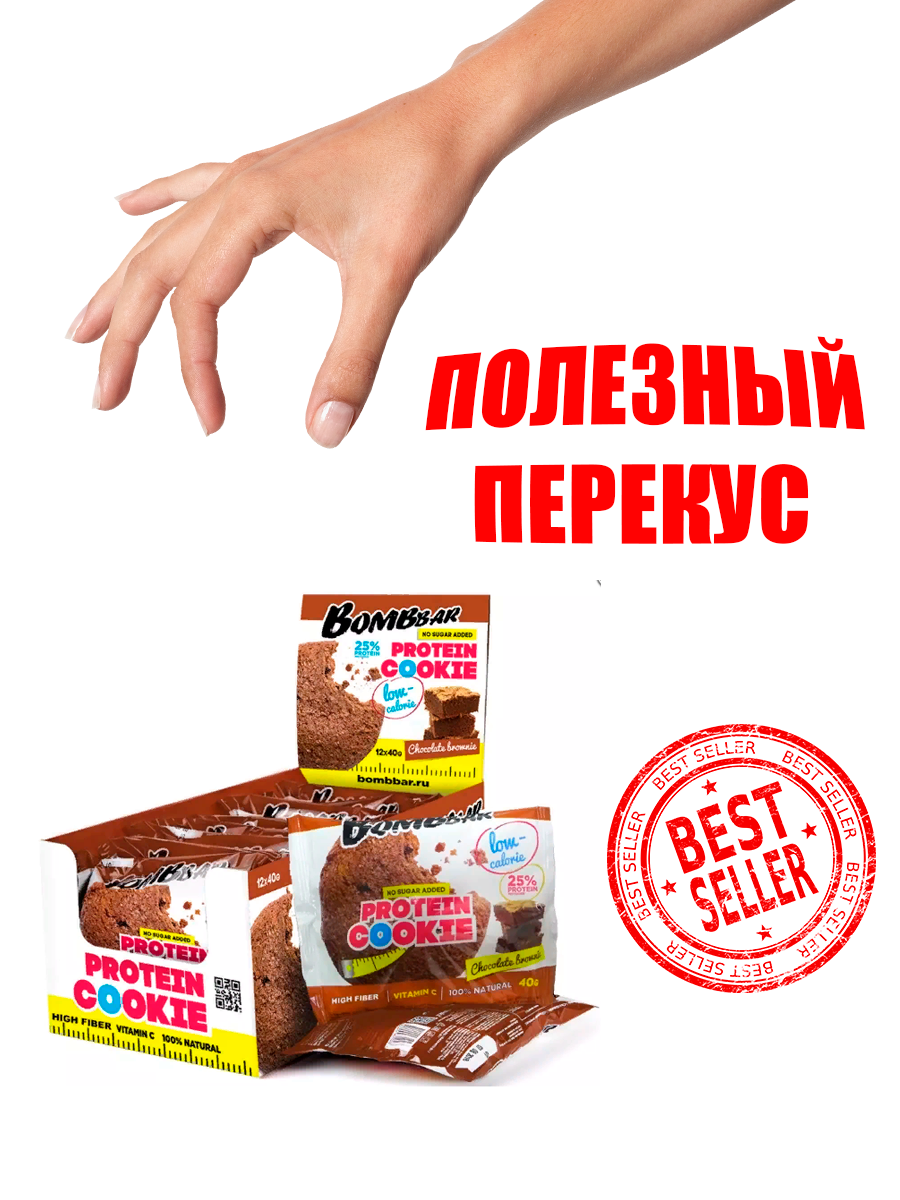Protein Cookie низкокалорийное печенье от BombBar - это полезный перекус без лишних калорий. Поможет сохранить силы во время занятий спортом и фитнесом, при физической и умственной работе. Оно даст подкрепиться, при этом не вредя фигуре. Оптимально принимать печенье после тренировки.