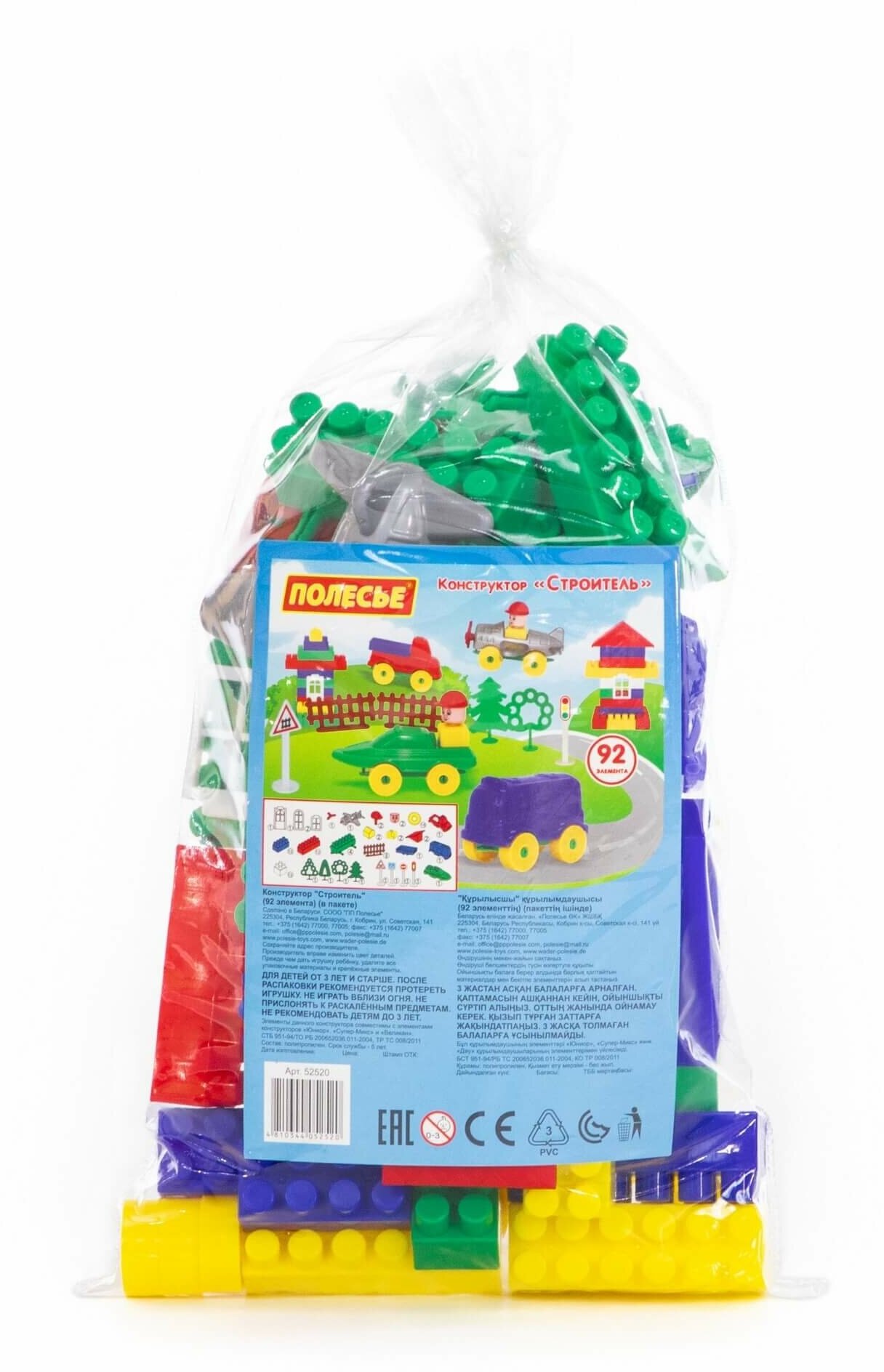 Конструктор "Строитель" 92 детали в пакете Полесье 52520