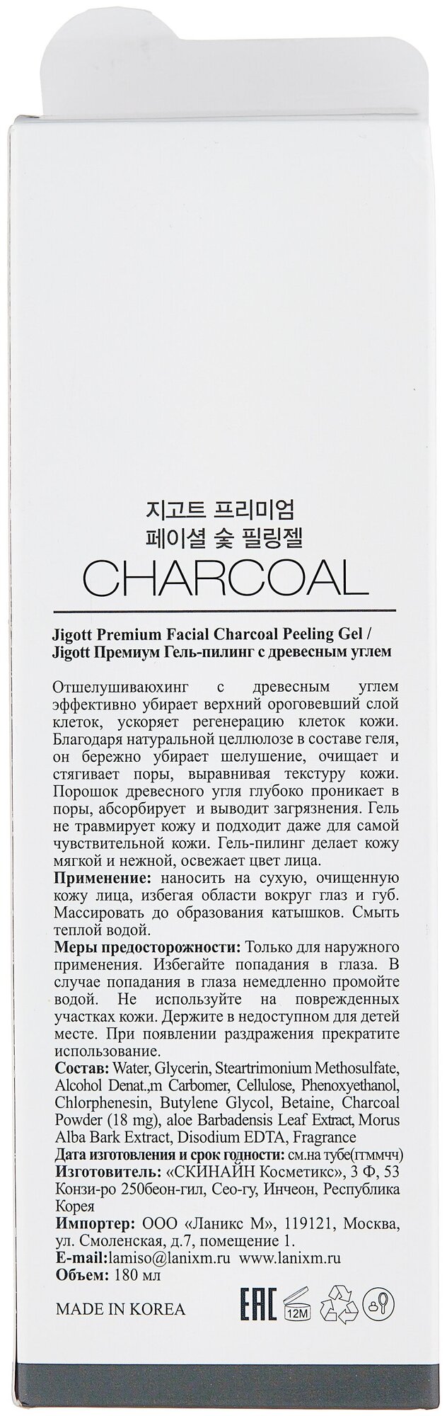 Пилинг-гель для лица Jigott Charcoal Peeling Gel 180 мл с древесным углем Premium с древесным углем