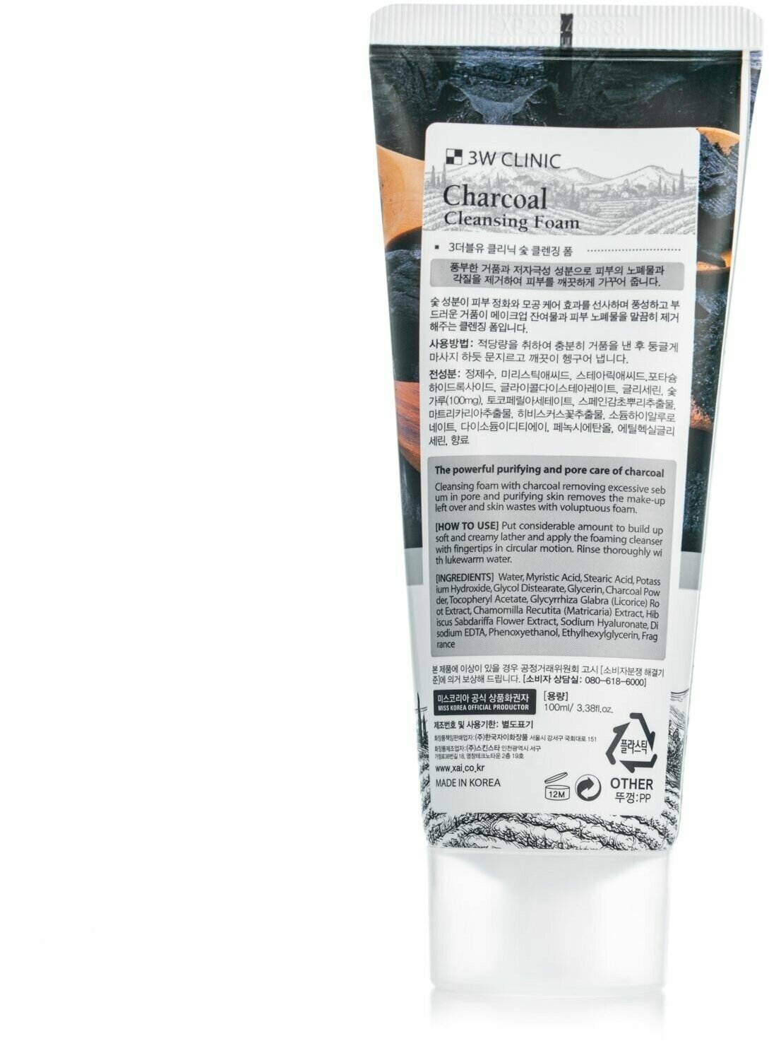 Пенка для умывания натуральная с углем 3W Clinic Charcoal Cleansing Foam 100 мл (774895)