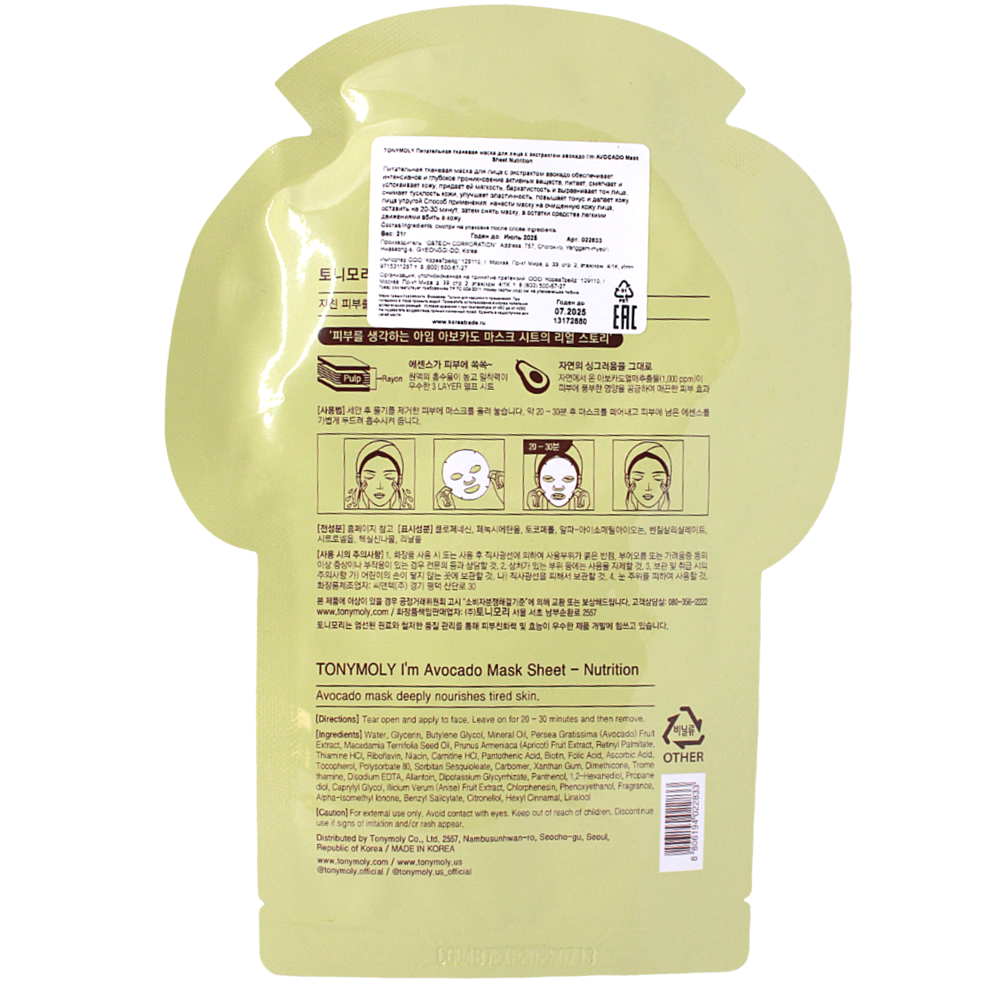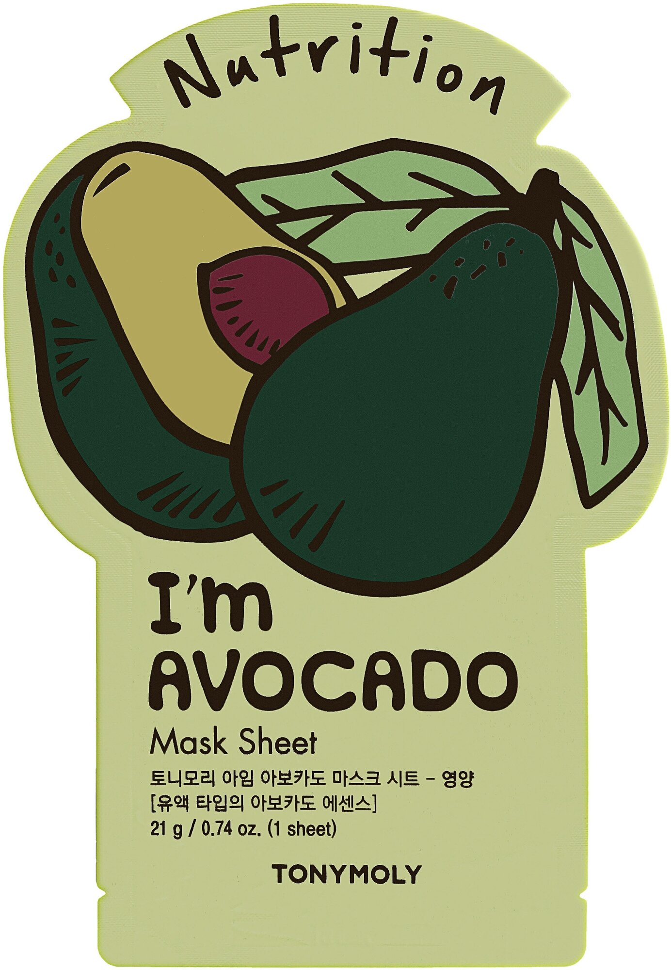 TONYMOLY Питательная тканевая маска для лица с экстрактом авокадо I'm AVOCADO Mask Sheet Nutrition 21г (397228)