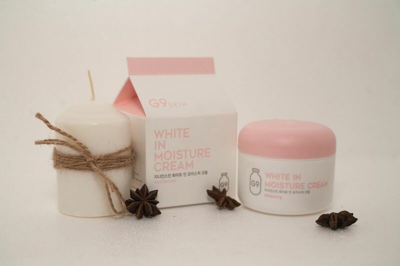 Чтобы кожа была свежей и сияющей, необходимо правильное увлажнение, а также отбеливание пигментации, покраснений и других несовершенств тона. Крем из серии средств G9SKIN White In Moisture – идеальное решение для сухой и тусклой, пигментированной кожи лица, при этом может использоваться и для ухода за другими типами кожи, а также для кожи тела. Белоснежный крем G9 White In Moisture Cream с текстурой молочного пудинга дарит коже чувство комфорта сразу же после нанесения, не оставляет липкости или жирного блеска, мгновенно увлажняет кожу на поверхности и в глубоких слоях, устраняет сухость и шелушения. Благодаря способности проникать вглубь кожи, запускает процессы осветления пигментации, подавляя синтез меланина и предупреждая появление новой пигментации. Как и все средства серии, крем содержат запатентованный комплекс 9 эффективных компонентов, среди которых главную роль играют экстракт молочного белка, ниацинамид, комплекс осветляющих растительных экстрактов.