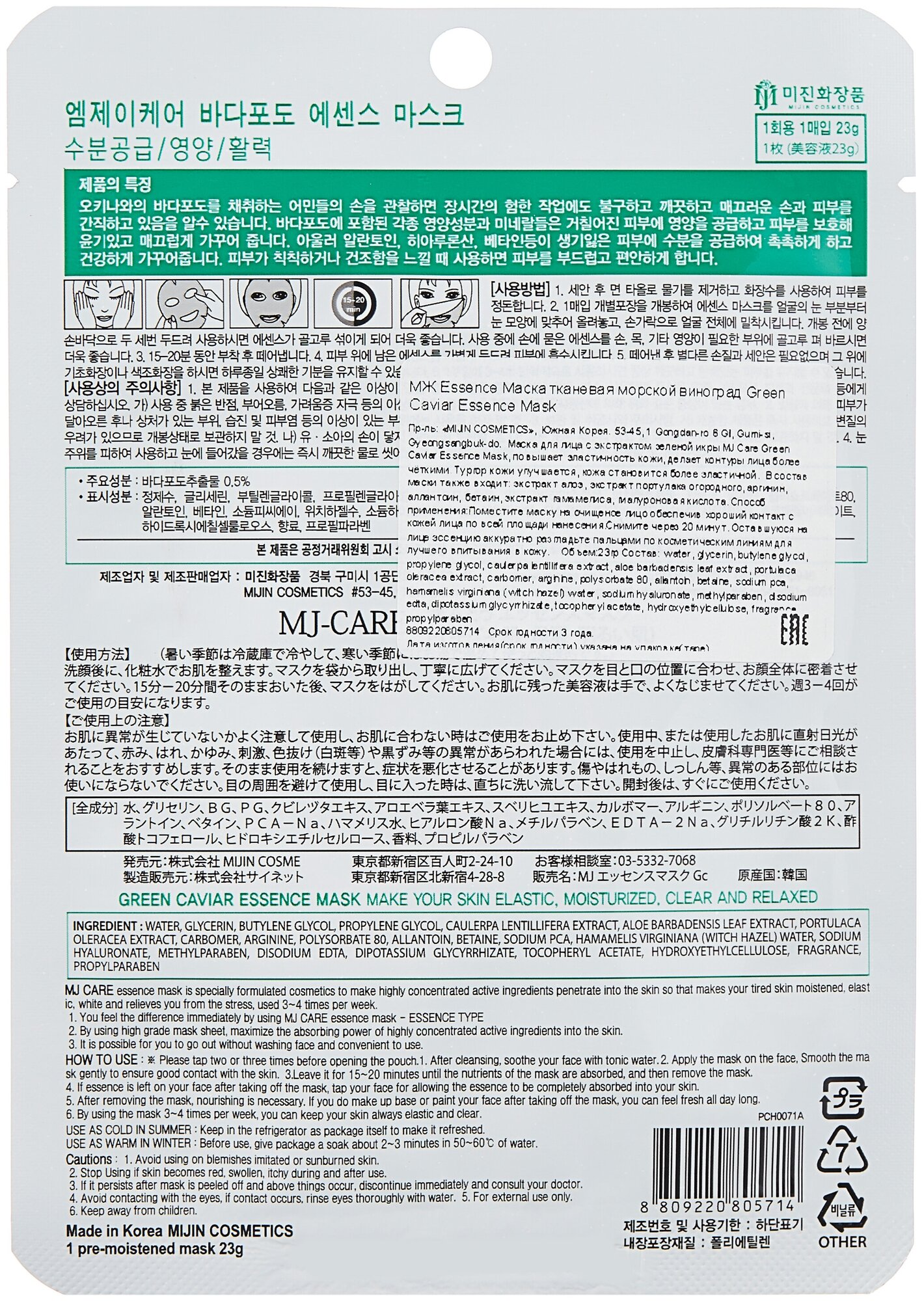 Маска тканевая для лица Морской виноград Green Caviar Essence Mask 23гр MIJIN Cosmetics (МЖ23)