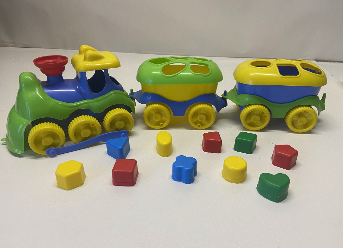 Паровозик состоит из 3 вагончиков, которые соединяются друг с другом с помощью специальных штырьков, благодаря чему вся конструкция получается довольно маневренной. Два последних вагончика – это сортеры с отверстиями разных форм в крыше, куда вставляются фигуры, подходящие к ним по очертаниям. Ребенок в процессе игры знакомится со следующими формами и геометрическими фигурами: треугольник пятиугольник круг квадрат сердечко овал цветок трапеция шестиугольник ромб Благодаря занятиям с паровозиком ваш малыш легко и быстро запоминает названия геометрических фигур, а также цвета, в которые они окрашены.