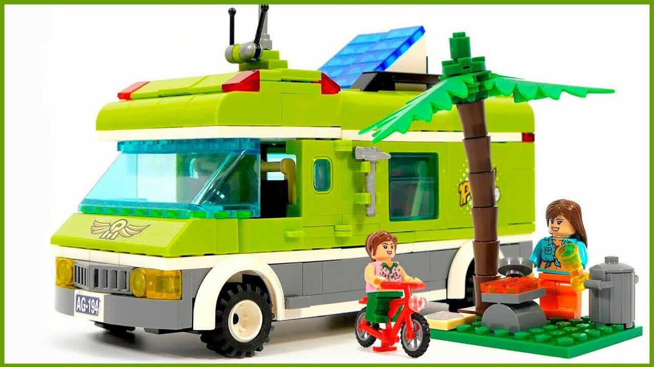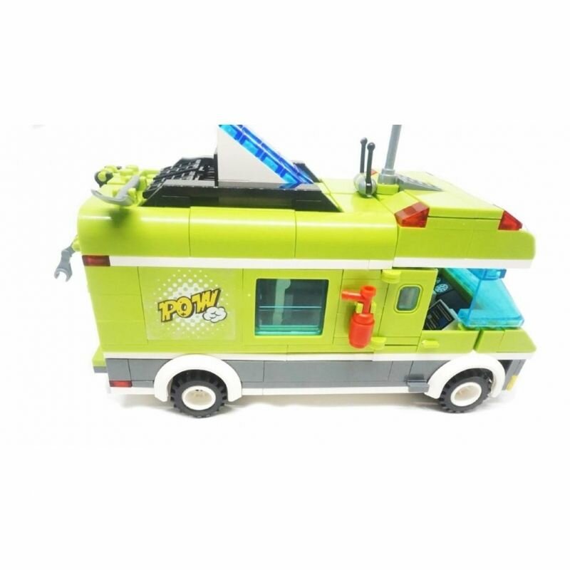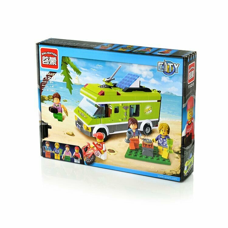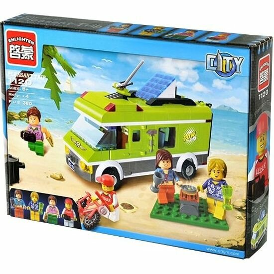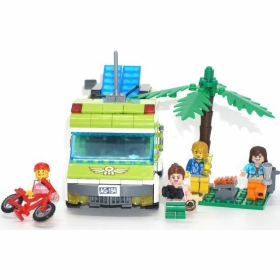 В зеленом фургоне, сконструированном из 380-ти деталей, есть все, чтобы превратить поездку в комфортное и приятное путешествие. Такой фургон идеален для вылазок на природу, ведь в нем есть необходимые продукты и оборудование, а также элементы для организации отдыха под открытым небом. С таким конструктором можно проигрывать великое множество сюжетов, так как героев - целых 4. Игра с набором поможет проявить ребенку фантазию, воображение, а также развить мелкую моторику.