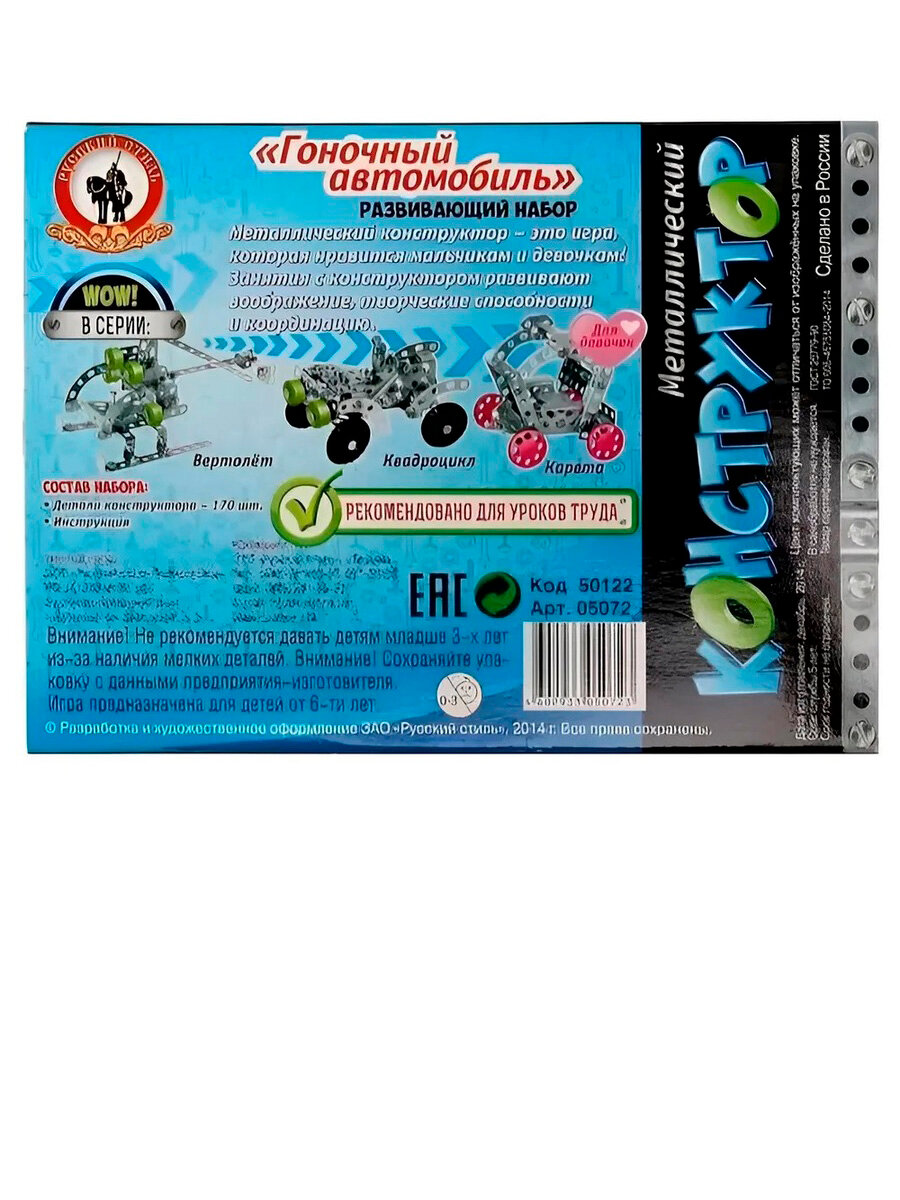 На сегодняшний день товар «Конструктор металлический "Гоночный автомобиль" 170 деталей Русский стиль 05072» можно купить с кешбеком в 1 магазине: Яндекс.Маркет