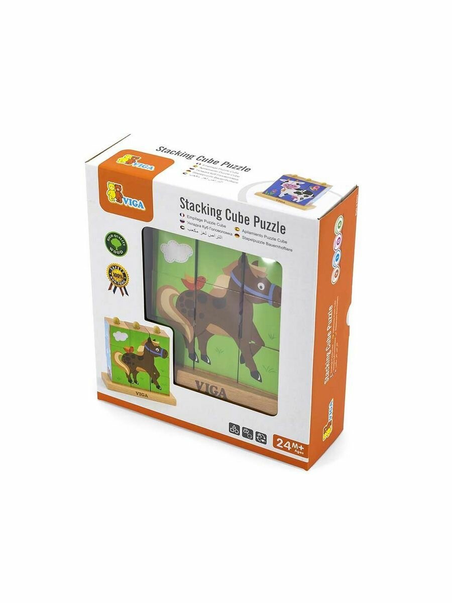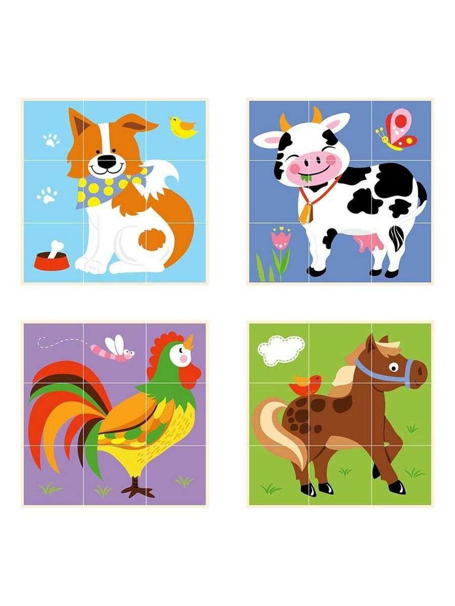 С этой забавной головоломкой-блоком могут быть озадачены четыре разных сельскохозяйственных животных. При правильном размещении деревянных блоков в держателе появляются изображения лошади, коровы, свиньи и собаки. Головоломка помогает развить моторику и координацию рук и глаз.