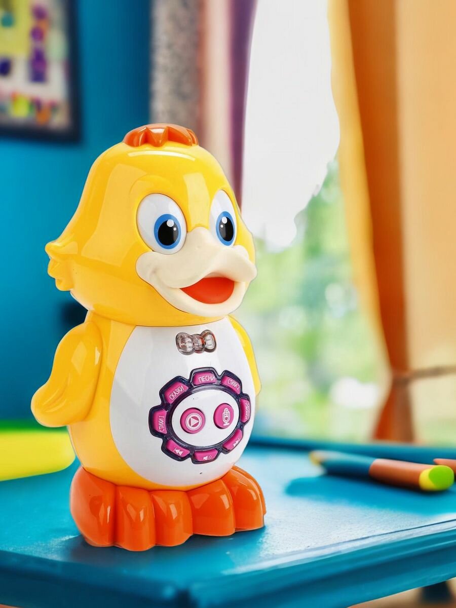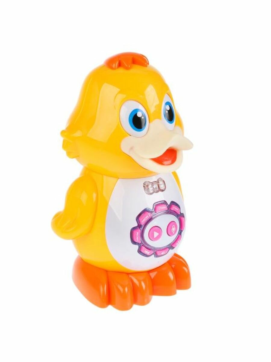 Забавный утенок с интерактивными кнопочками подарит ребенку незабываемый досуг. Малышу понравится нажимать на животик игрушки и прослушивать все новые и новые композиции.