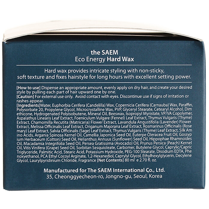 Воск для укладки волос Eco Energy Hard Wax южнокорейского бренда The Saem входит в состав ухаживающей линейки товаров, в основе которых находится сочетание комплекса органических масел и натуральных растительных экстрактов. Твёрдая консистенция продукта превращается в руках в мягкую эссенцию, которая легко распределяется на поверхности прядей.