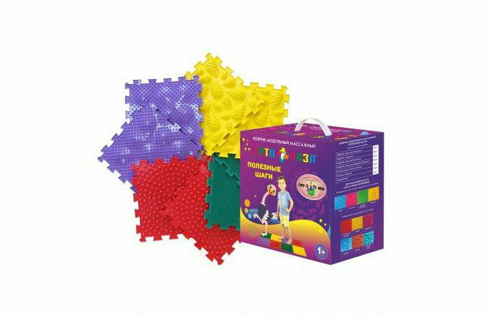 Коврик Полезные шаги станет лучшим подарком для всей семьи. Ведь его можно использовать деткам от 1 года. Комплект сочетает в себе 4 уникальные поверхности, которые состоят из крупных и мелких элементов, поэтому занятие на таком коврике будет максимально эффективным. За счет природных рельефов коврика Ваш малыш и Вы сможете наслаждаться каждой тренировкой.