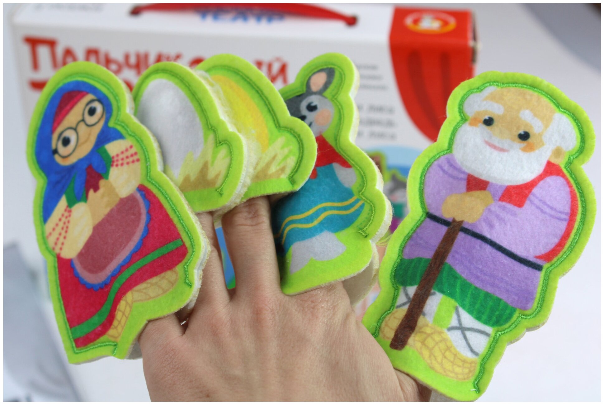 С набором пальчикового кукольного театра «В гостях у сказки» вы легко и без лишней подготовки сможете устроить представление дома или в дороге. Наденьте куклы из мягкого фетра на пальчики и управляйте ими, тренируя мелкую моторику и ловкость движений. Пальчиковый кукольный театр «В гостях у сказки» увлечёт малыша, познакомит с героями шести сказок и станет помощником в развитии речи и сенсорно-двигательнои? функции. Управляя куклами, ребёнок тренирует подвижность пальцев обеих рук и пространственное мышление, а копируя или придумывая реплики для героев, развивает артистизм, красноречие и фантазию.