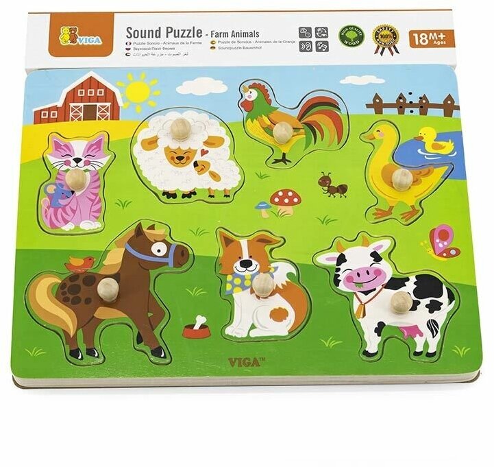 Пазл-вкладыш"Ферма"со звуком7 деталейв пленке VIGA VG51273