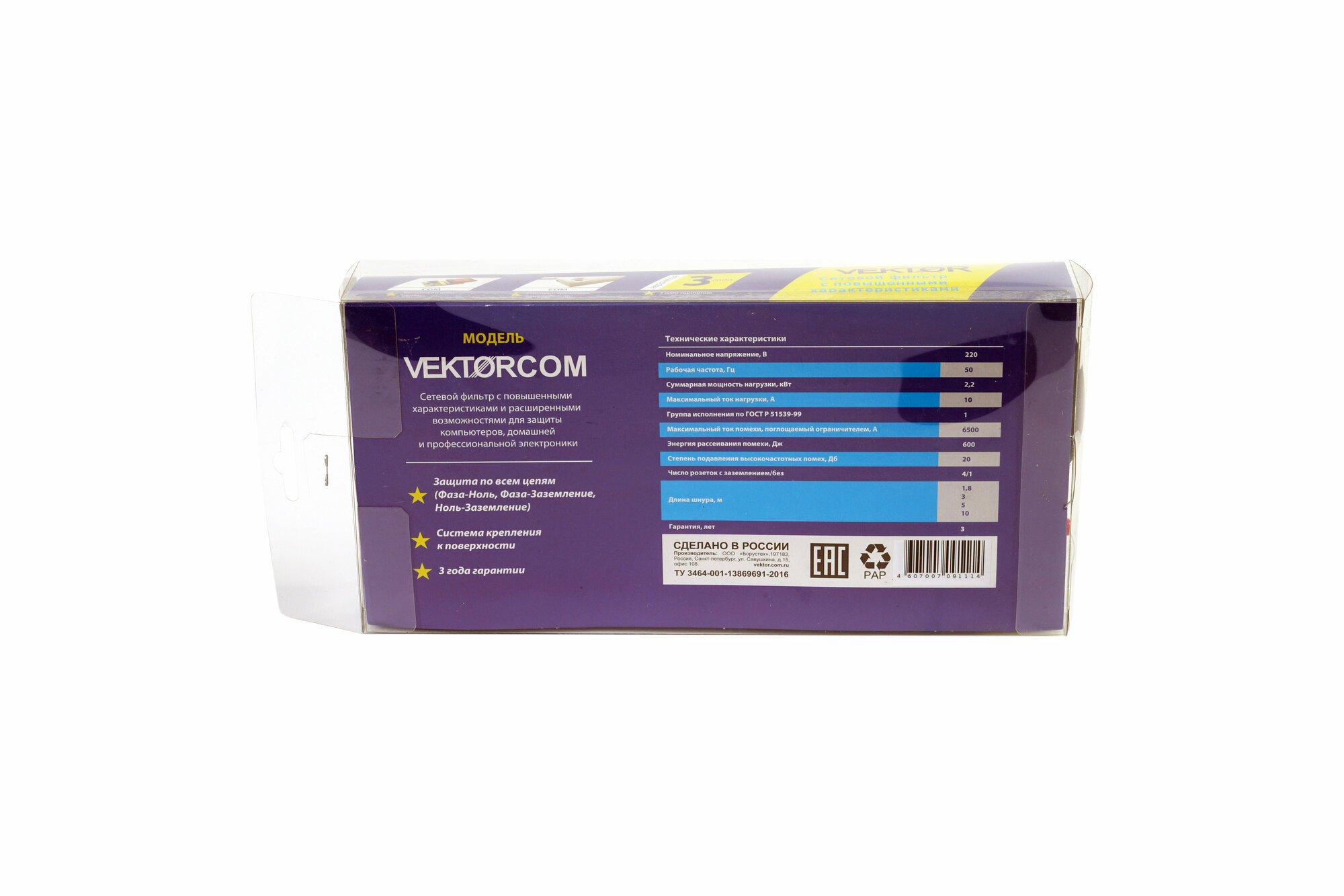 Сетевой фильтр, обеспечивающий защиту от импульсных и высокочастотных помех по трем цепям, Лучшее соотношение цена/качество, наиболее популярная модель для защиты компьютерной и офисной техники. Используется для защиты индивидуальных рабочих мест, кассовых терминалов, узлов доступа интернета а также для бытового использования .Защита по трем цепям(фаза-ноль, фаза-земля, земля-ноль) высококачественный АБС пластик корпуса.