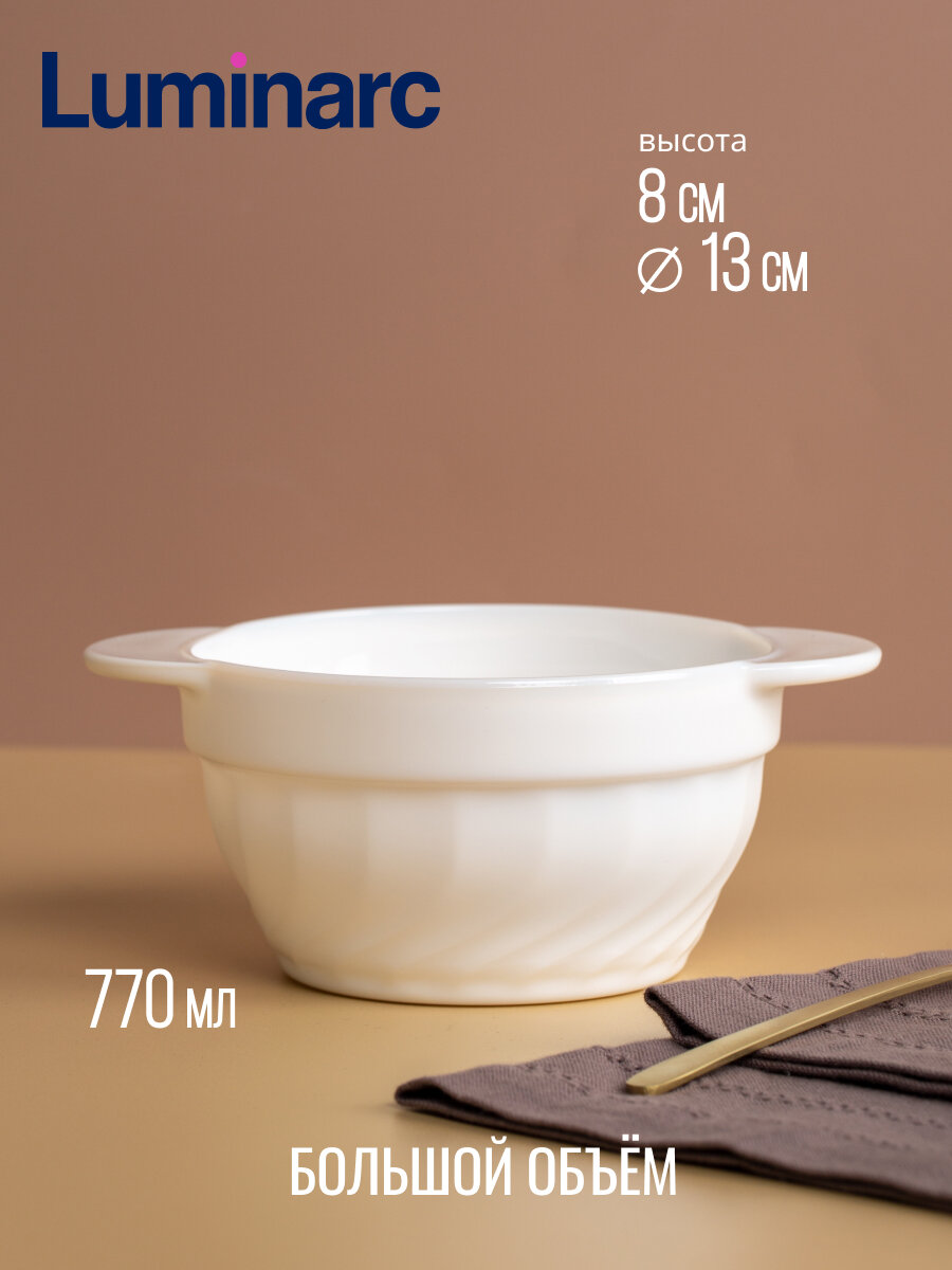 Супница белая из серии Luminarc Trianon. Объем: 770 мл. Материал: ударопрочное стекло, устойчивое к резким перепадам температуры. Можно мыть в посудомоечной машине и использовать в СВЧ. Супница Люминарк Трианон безупречно белая, глубокая, вместительная. Классическая форма уместна в любой сервировке. Опаловое стекло устойчиво к сколам и трещинам, не царапается в посудомоечной машине. Предназначена для подачи супов, борща, молочных каш, киселей. Можно использовать для детского питания.