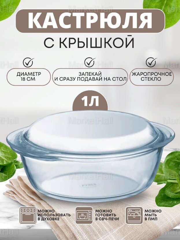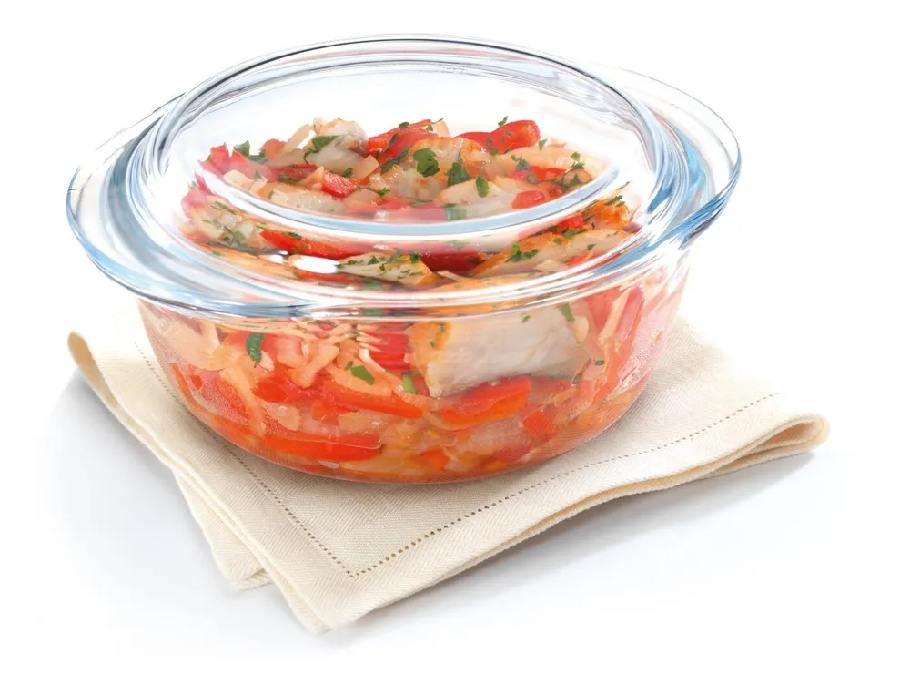Стекло-непористый материал и не впитывает вкус и аромат продуктов. В одной форме можно готовить как основные блюда, так и десерты.
