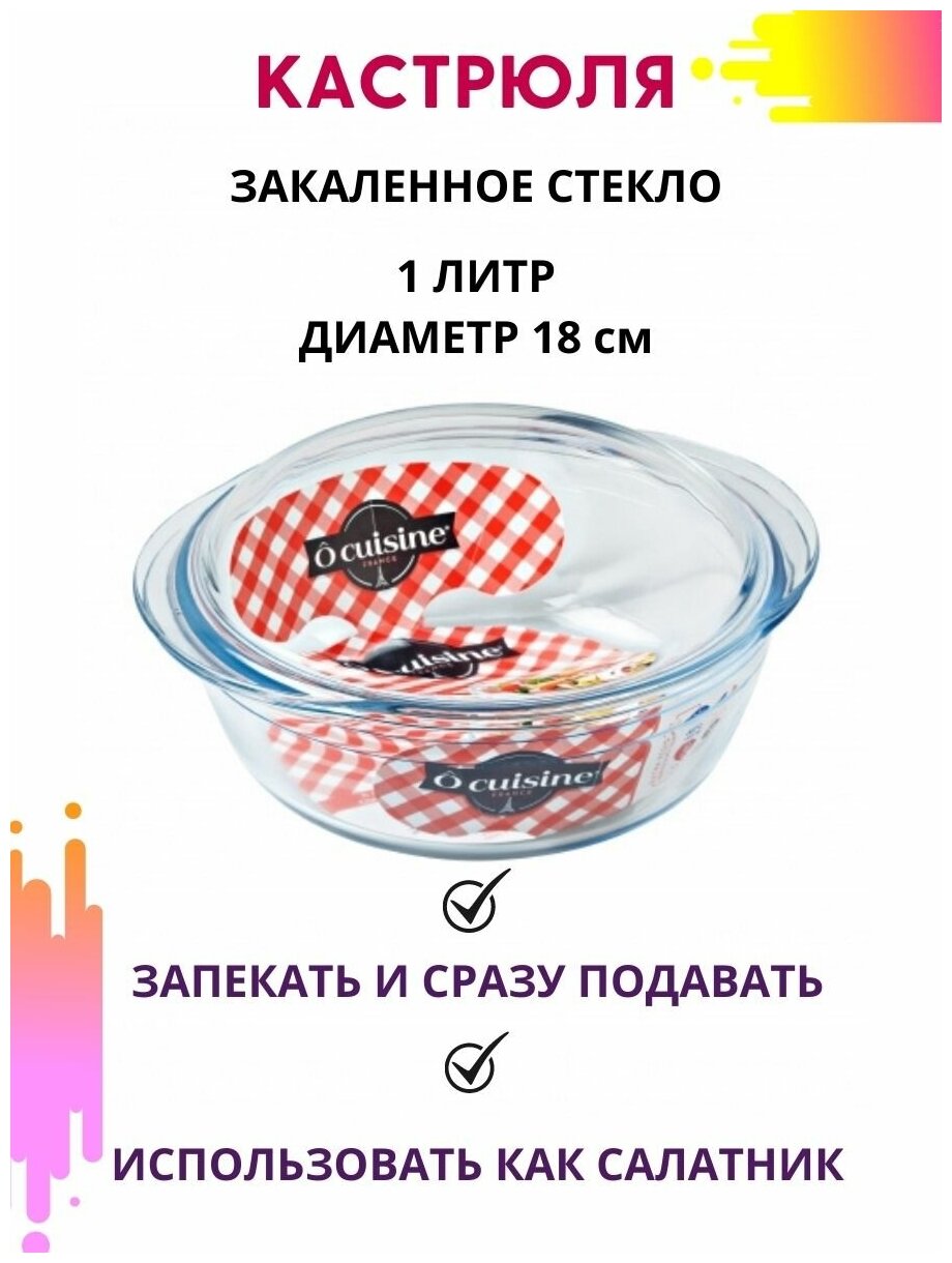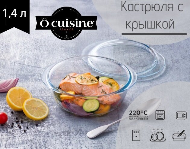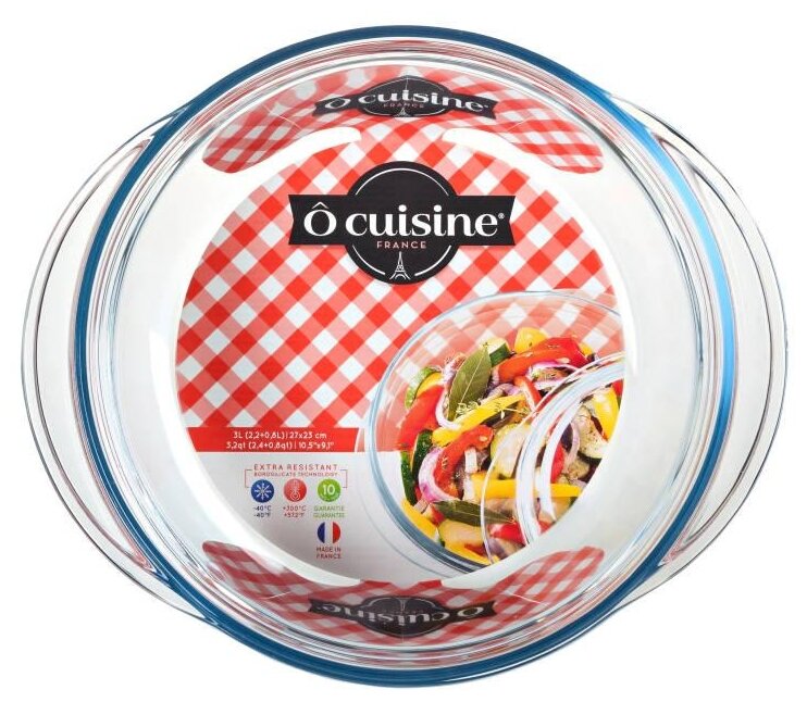 Кастрюля O Cuisine с крышкой изготовлена из закаленного боросиликатного стекла, которое выдерживает температуру от -40С до +300С. Изделие оснащено двумя ручками. Кастрюля идеально подходит для использования в духовках, микроволновых печах, холодильниках и морозильных камерах (до -40С).