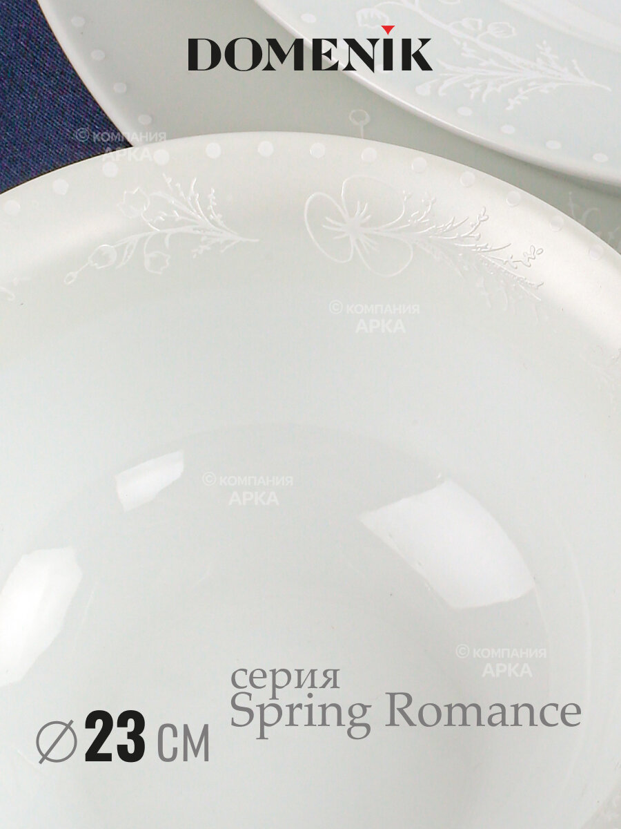 Изготовлен из высококачественного фарфора. Фарфоровая посуда отличается белизной, прочностью и легкостью. Хорошо сохраняет тепло. Краски декора безопасны для приема пищи, посуду можно использовать в микроволновой печи и посудомоечной машине. Благодаря элегантности и практичности посуда подходит как для ежедневного использования, так и для сервировки по случаю торжества. Посуда ''Domenik'' освежит интерьер и создаст особую атмосферу в доме. Серия ''Spring Romance'' разработана французскими дизайнерами.