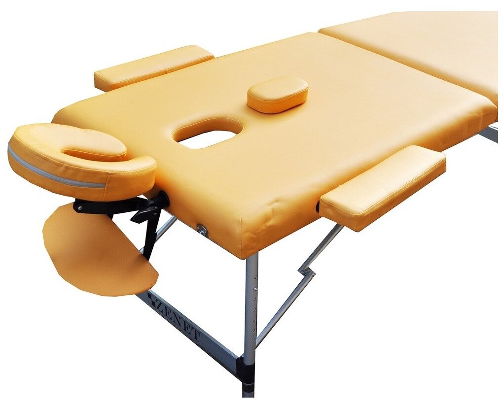 Складной двухсекционный массажный стол ZENET ZET-1044 изготовлен из высококачественного алюминия и ПВХ. Уплотнителем служит поролон толщиной 4 см. Стол занимает очень мало места в сложенном виде и благодаря этому идеален для применения в домашних условиях. Небольшой вес и идущая в комплекте сумка-чехол позволяют легко транспортировать его. Столы комплектуются мягкими подголовниками, двумя подлокотниками и полочкой для рук. Ножки стола выдвигаются, что позволяет работать на нем массажисту любого роста.