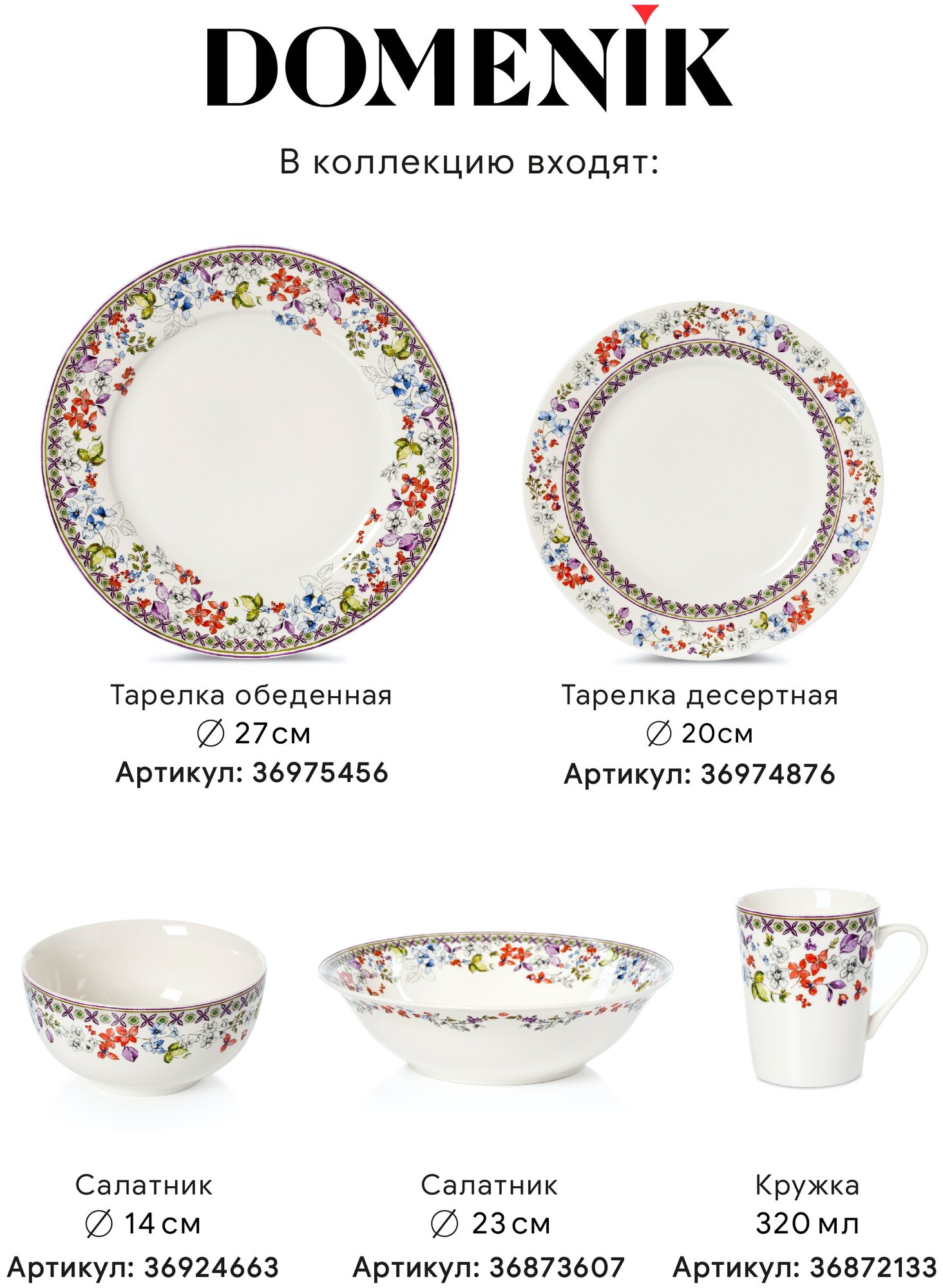 Серия ''Artesano'' - это посуда от производителя ''Доменик'', которая отличается интересными декорами, с тонкой детализацией и прорисовкой элементов. ''Domenik'' - это российский бренд посуды из фарфора, появившийся на рынке в 2007 году. Производится посуда на родине фарфора - в Китае.