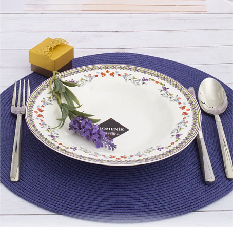 Тарелка глубокая фарфоровая Domenik Artesano для подачи первых блюд изготовлена из высококачественного фарфора - гигиеничного и безопасного материала, идеально подходящего для ежедневного использования. Цветочный рисунок в стиле кантри - фиалки и незабудки, напоминают роспись по ситцу.