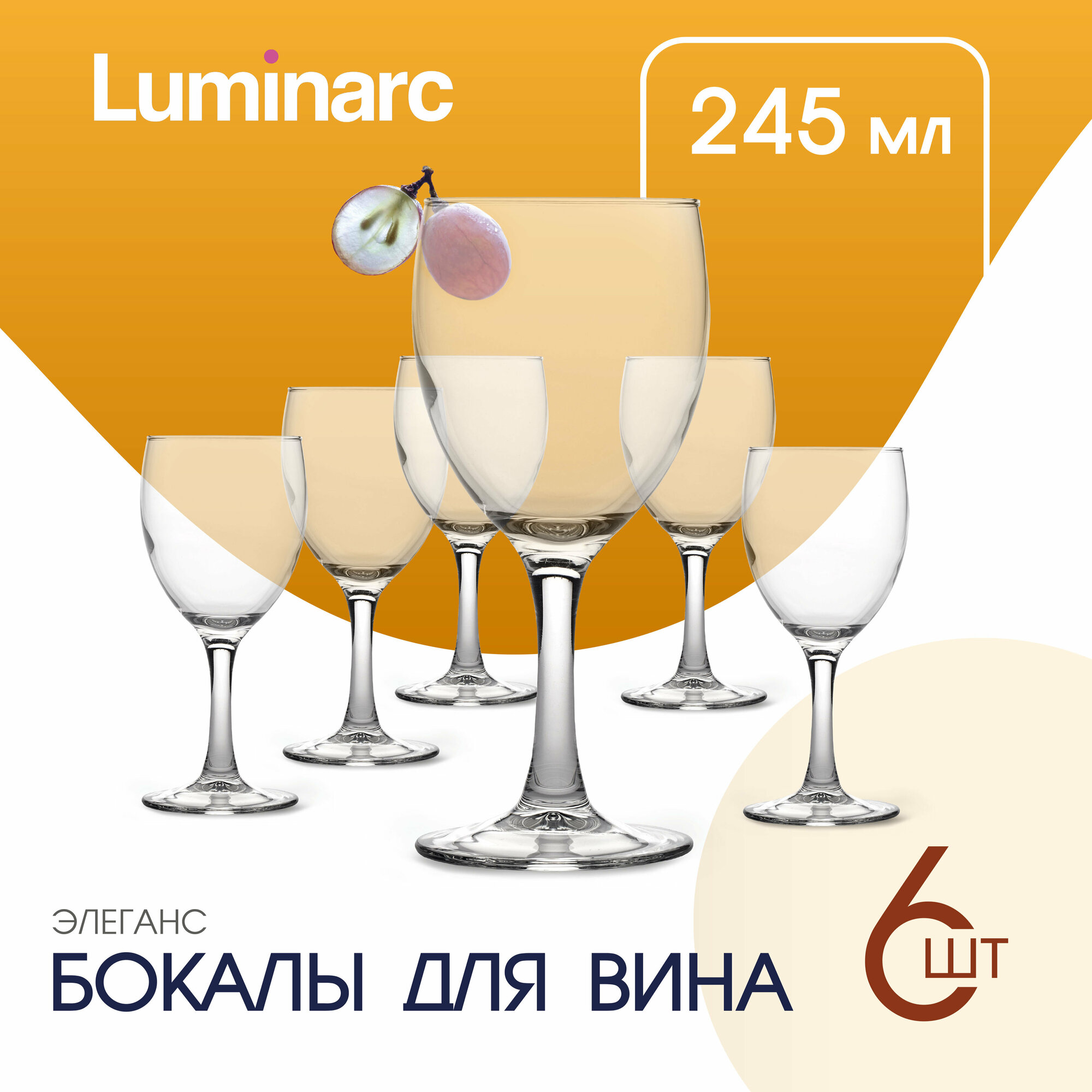 На сегодняшний день товар «Набор бокалов для вина Luminarc Элеганс P2504 6шт 245мл» можно купить с кешбеком в 1 магазине: Яндекс.Маркет