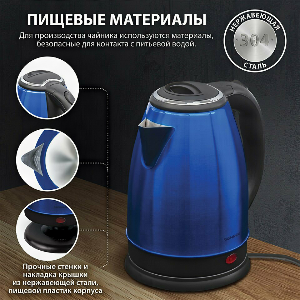 Чайник SONNEN KT-118B с ярким дизайном будет незаменим на кухне, в офисе и дома. Корпус данного чайника изготовлен из прочной нержавеющей стали, которая не будет деформироваться во время эксплуатации.